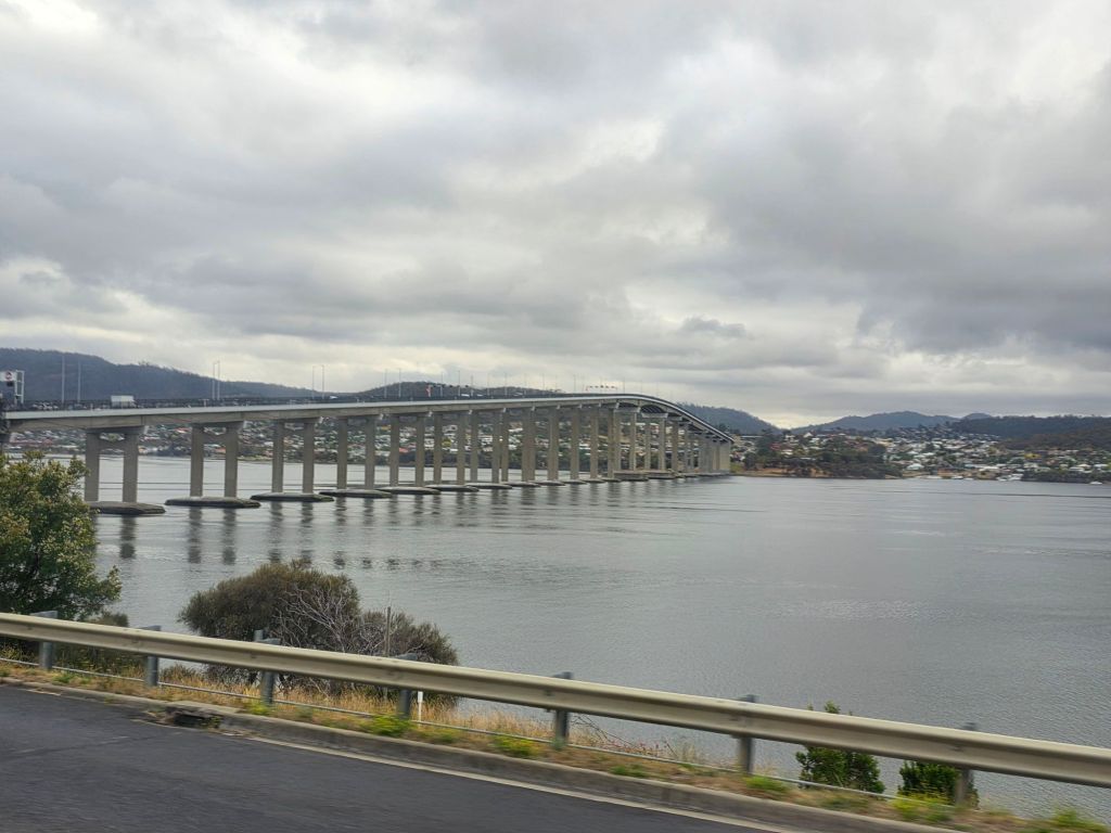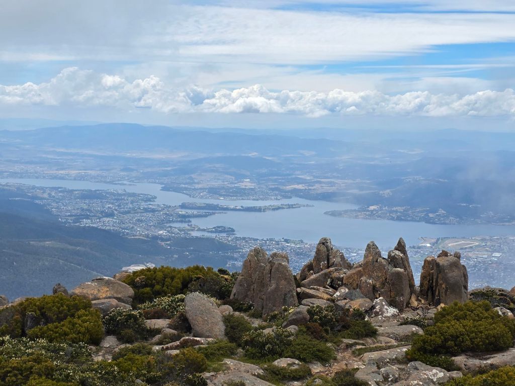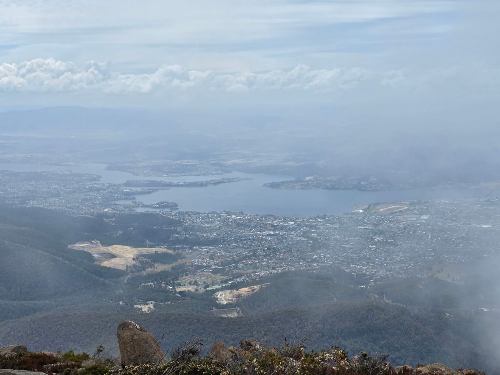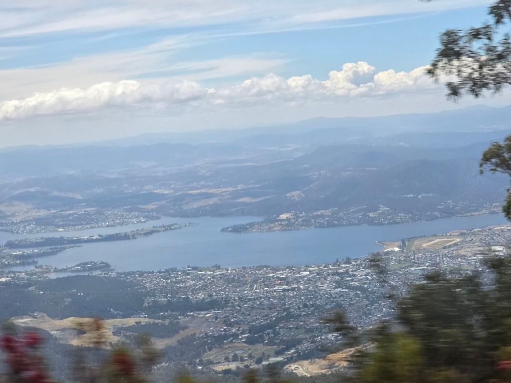 As we approached the top, the clouds were clearing. With a small walk down to a view point we were lucky enough to get a break in the clouds and see the splendour of Tasmania rolled out in front of us like a landscape model with all the lush forestry and the tiny town some 3000ft below us. The river Derwent meandering from the deep green hills, under the Tasman bridge and through the model town and out via the harbour to the ocean.
