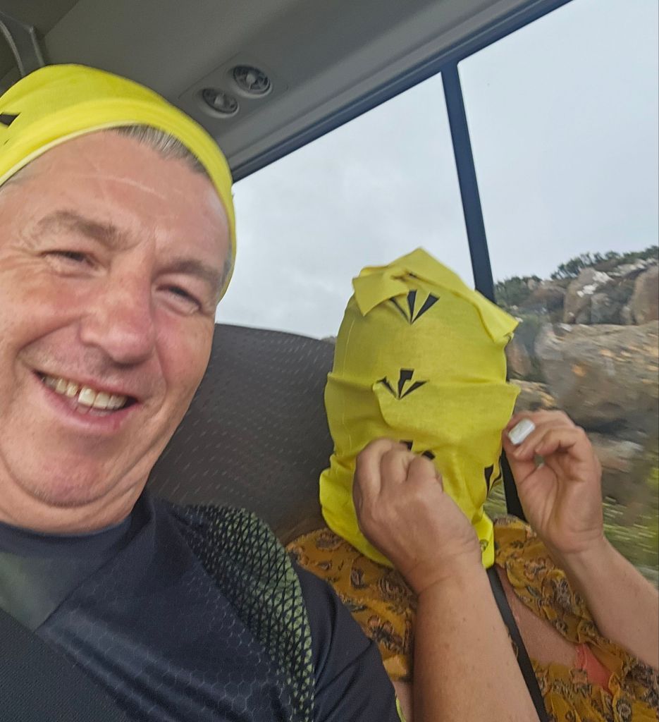 Dave also gave everyone a practical buff to wear. These were similar to what the convicts wore when working outside. Dave explained they were for the cold but we reckoned they were so he could easily identify anyone running late and haul them back on the bus.