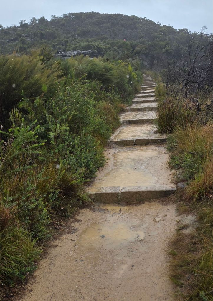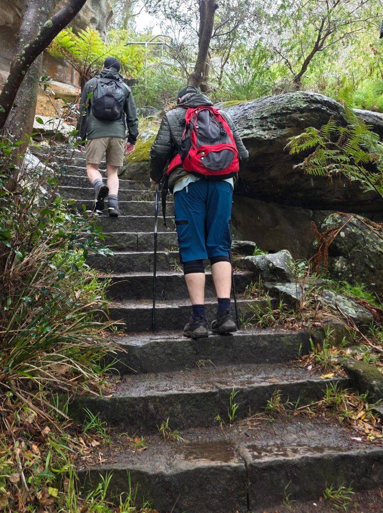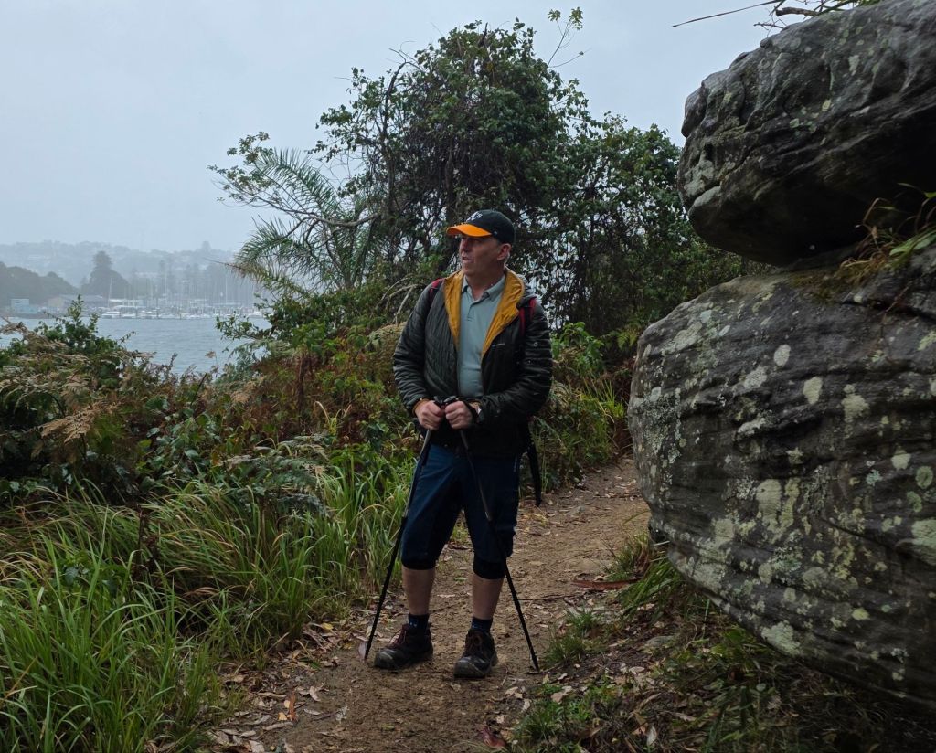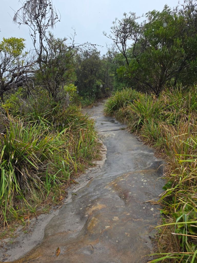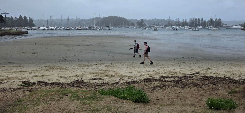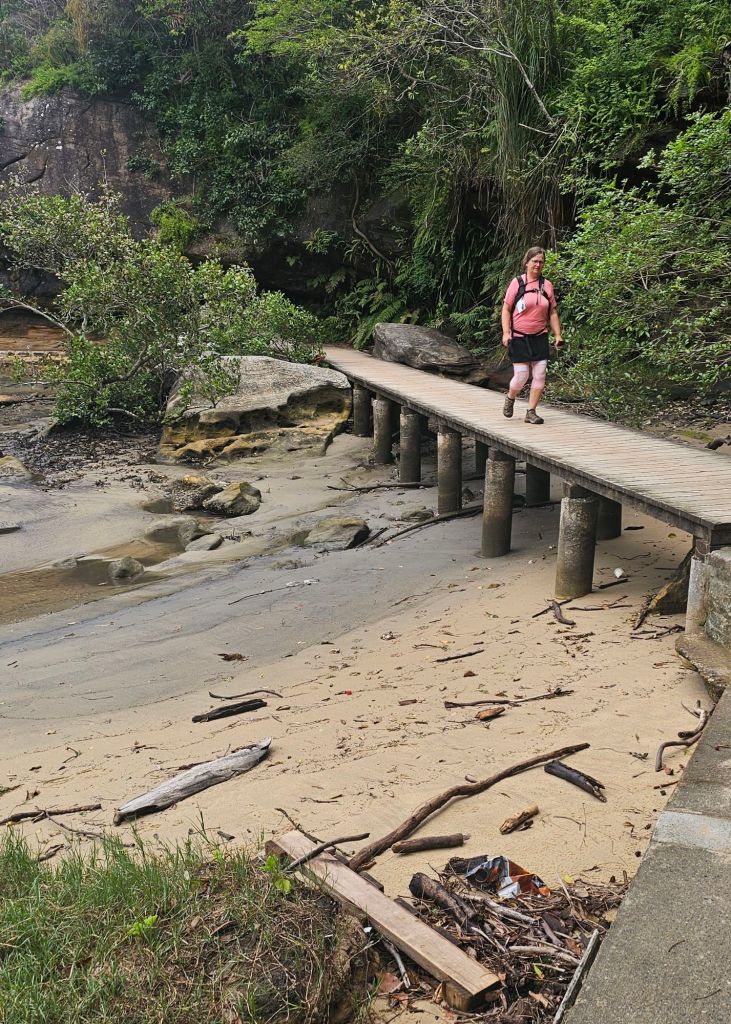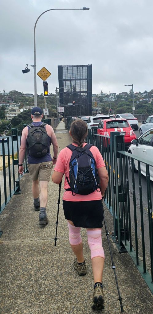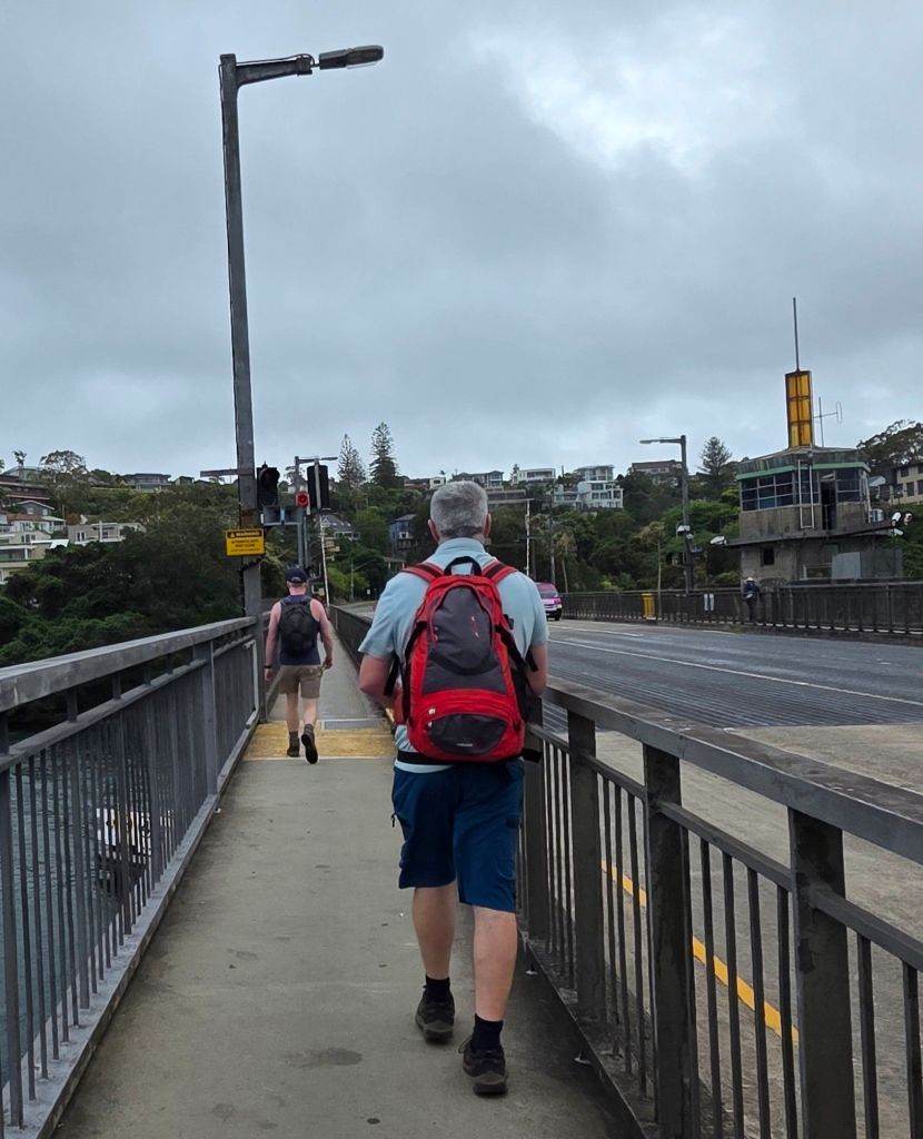Not to be deterred and with our local knowledgeable guide Benny we headed off in an uber to Spit Bridge on the other side of Sydney. We were also relieved as Steph, who was hosting friends for the day, had informed us that this trek was an easy terrain with hardly any steps, inclines our descents. Fully geared up for the weather we set off on our walk. The bascule (lifting) bridge was up to let the boats through. Just as we approached it had closed and we were able to continue without stopping. Maybe our luck was in after all and we’d avoid the worst of the rain.