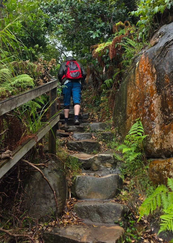 Around every bend was another hidden beach, or a hidden cave. The terrain is such that you need to descend to sea level, then climb again via the well maintained natural and man-made paths to avoid the rugged cliff face. This in itself makes the trek tougher but enjoyable with magnificent views from the top stretching out over Sydney Harbour. An added bonus was the rains had held off.