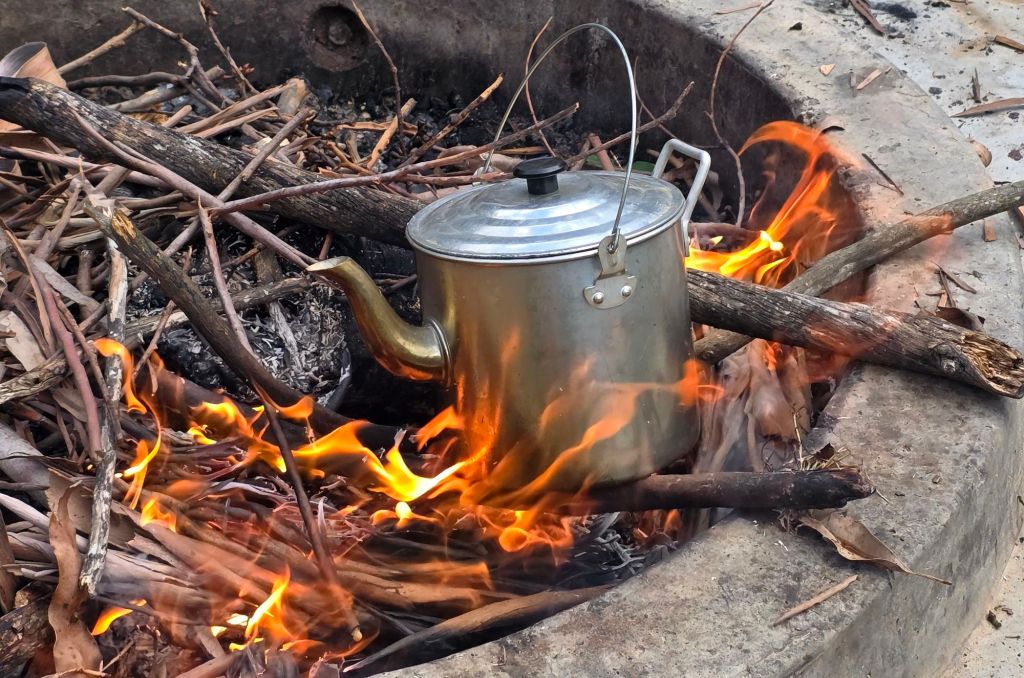 The fire ban had been lifted at this site earlier in the day so we gathered wood and got a small fire going. Enough to boil a kettle and keep the mosquitoes away.