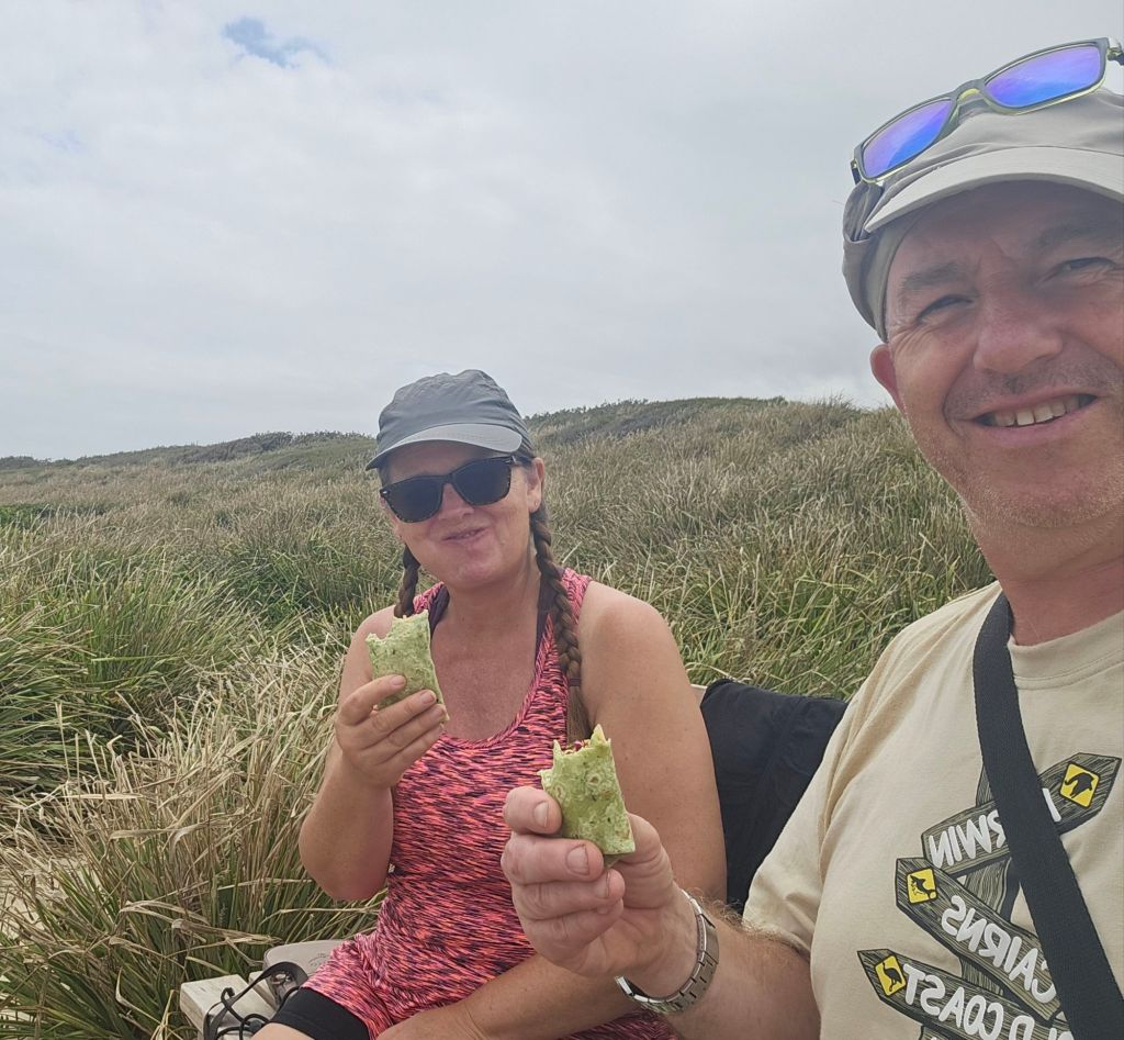 We ate our porridge before getting breakfast envy, as the smell of cooked bacon and eggs wafted through from the gas BBQ area. The family were only one step away from glamping with their huge tent and culinary delights. We had been chatting to them, grandad, son and three children. Small world as the grandad left Christchurch in England to emigrate to Australia with the family when he was seven.