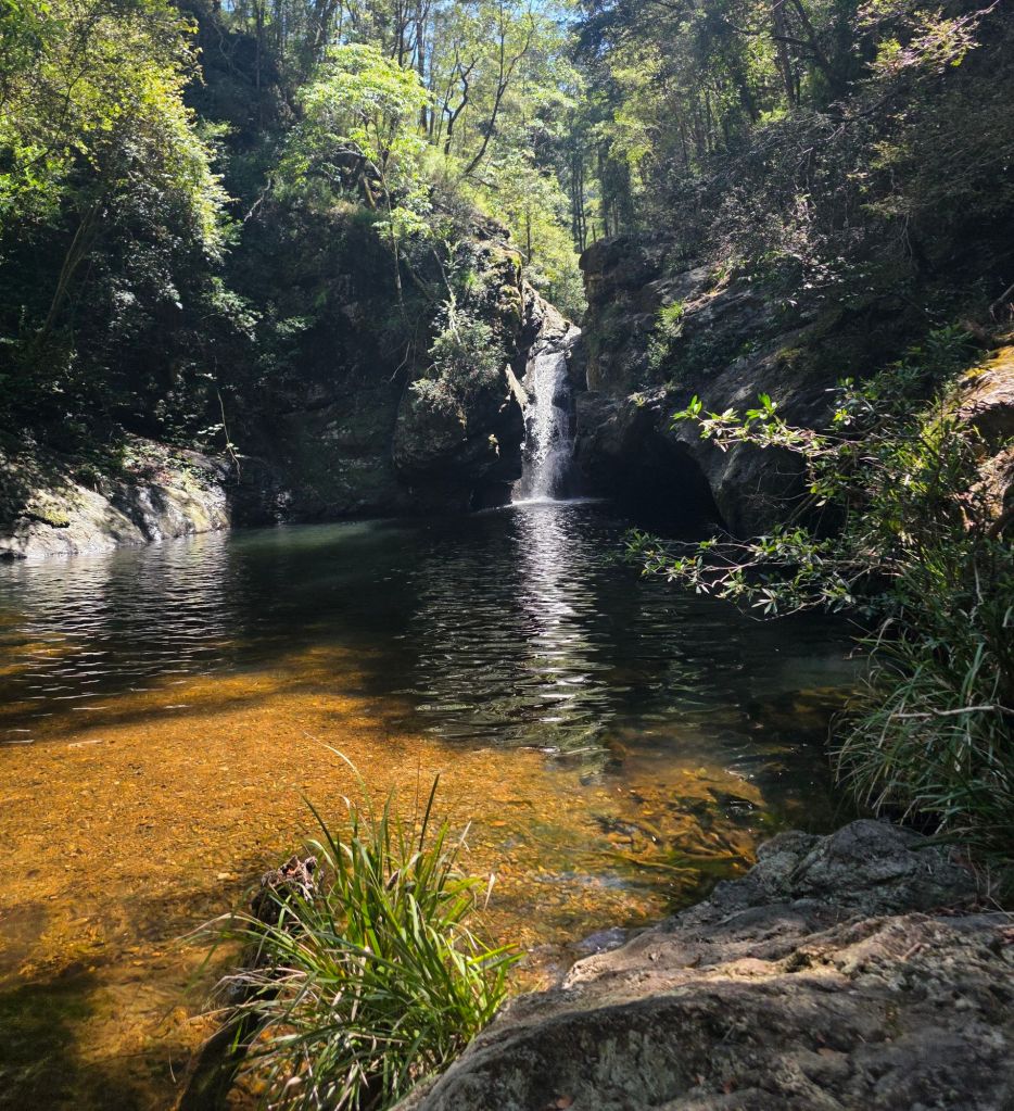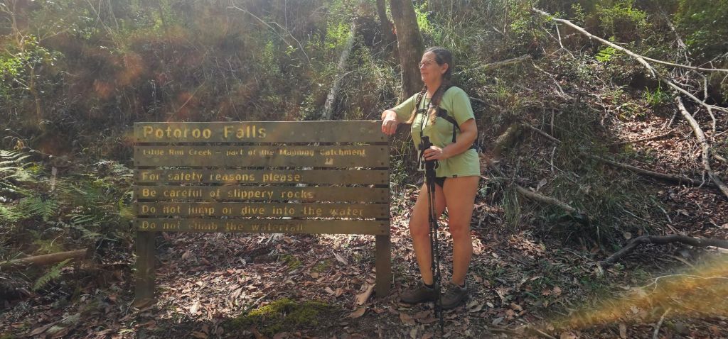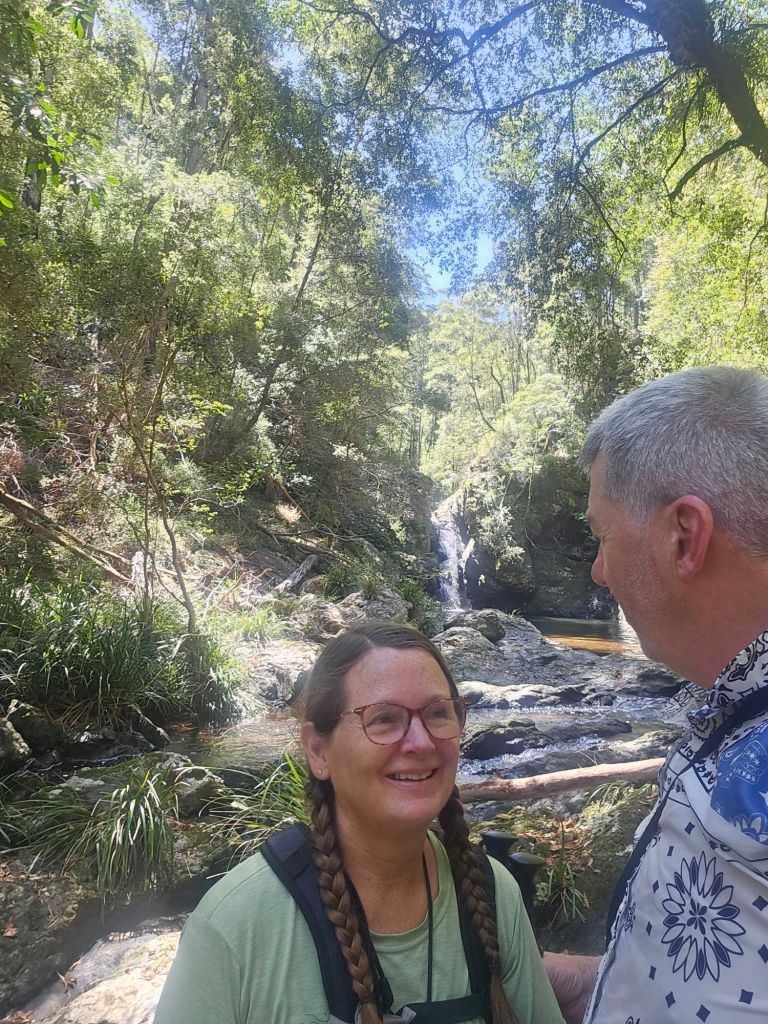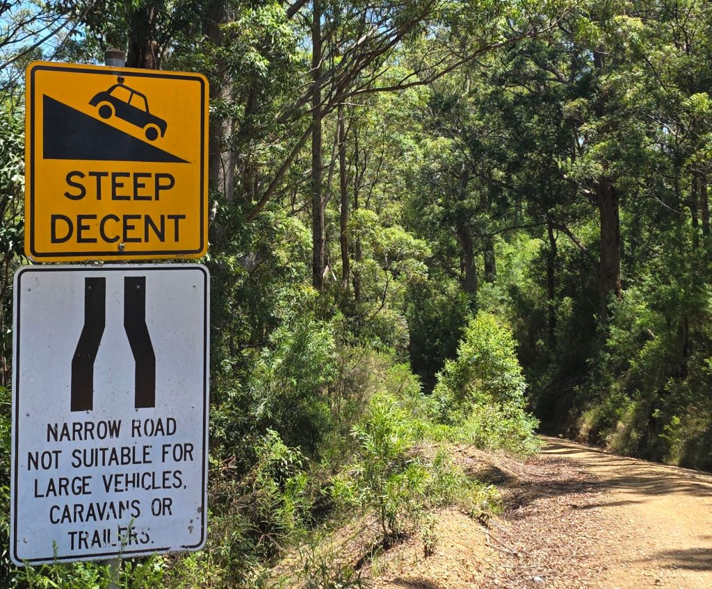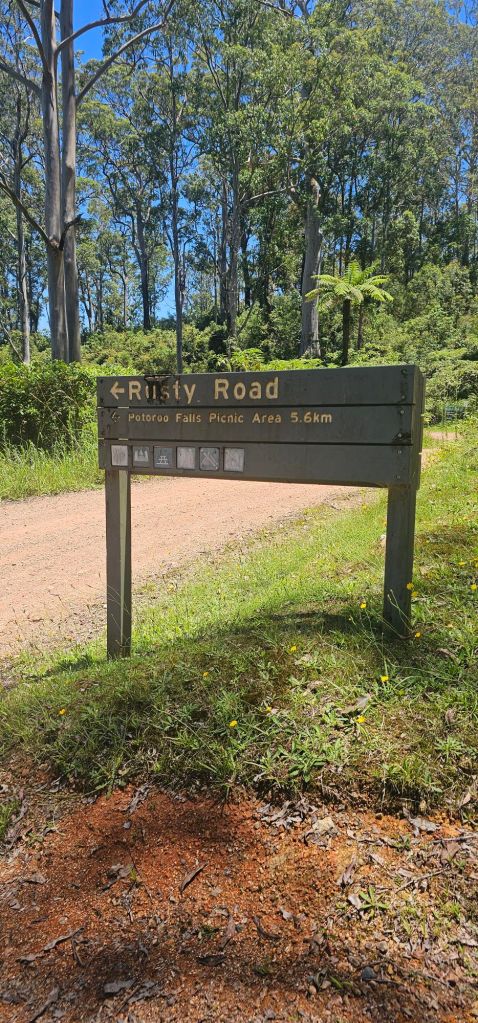 Setting out on a full stomach of porridge and bananas we headed for Potoroo Falls. Suitable for 2- wheel drive cars on a dry day. A twenty minute drive along the usual unsealed roads saw us arrive to the road down being closed due to a landslide.