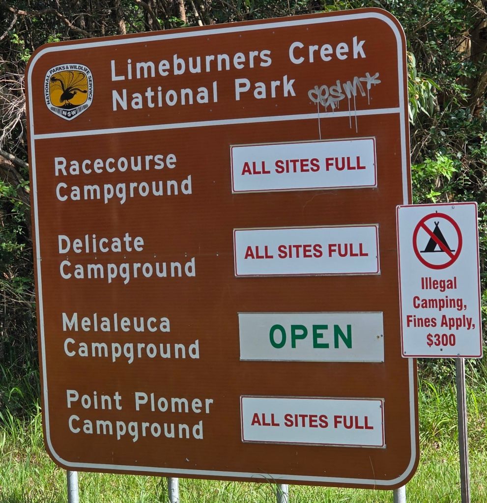 Driving over a couple of hundred kilometres (approx 150miles) right through koala territory, well that’s what the signs keep telling us. A cricked neck and googly eyes, with only a couple of false alarms to show for all that staring up in the eucalyptus trees.