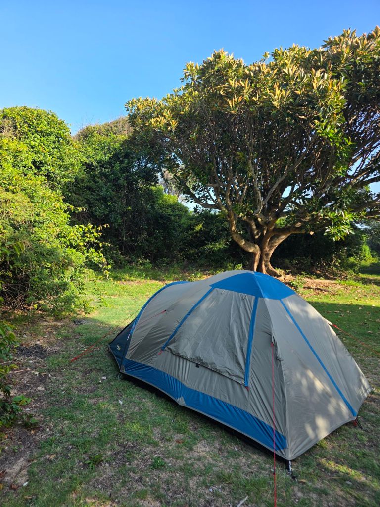 We took a short walk up around the very windy head and wondered what kind of night we were in for being so close to the sea. We arrived at Racecourse Campground, Goolawah Beach and started setting up camp but the tent felt like it was going to take off. We moved pitches and found a secluded spot elsewhere on the shore which was sheltered from all the elements yet with only a ten metre walk around the hedge to the beach.
