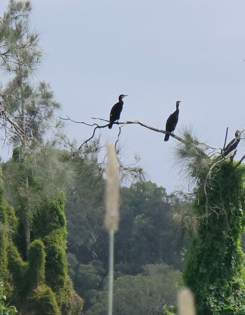 Still no koalas, not for the want of looking. Emergency stop as a water dragon was not letting anyone cross the bridge it was protecting by sunning on the road. Eventually he moved and we followed the river and lakes passing through expansivefarmland. Wait what’s that over there on that small island.