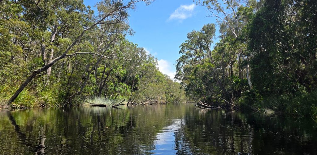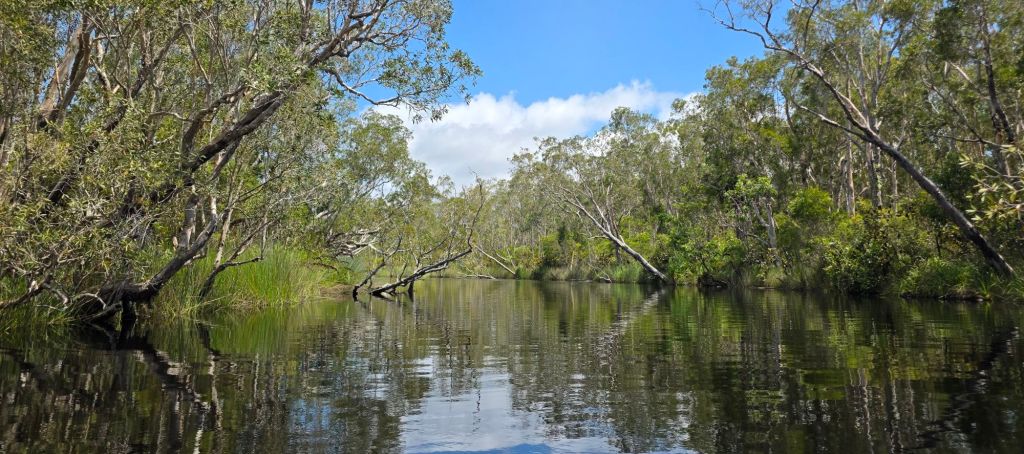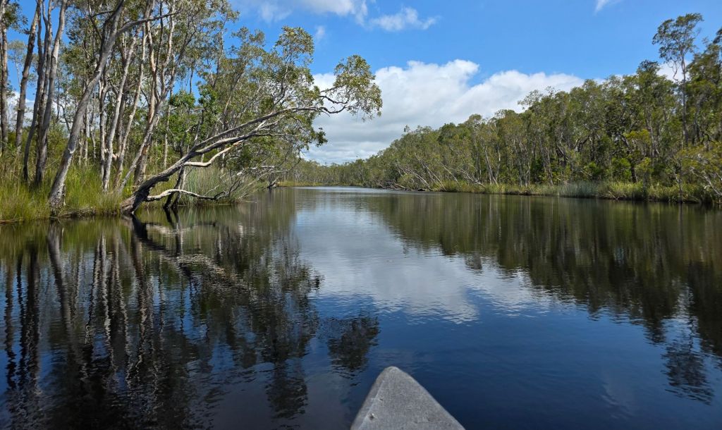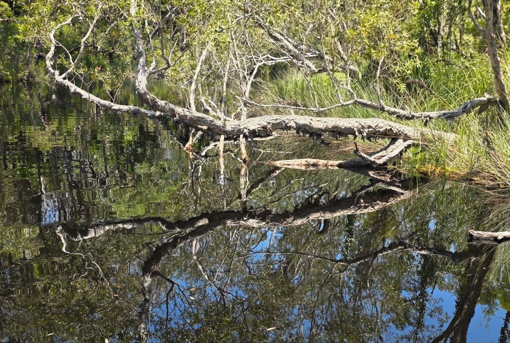 As we gently paddled up the North Noosa River there were so many reflections in the water. We had our nose in front and the distance was getting further so we eased up on the pace and made the most of the peace and tranquility. The boat passed us and went up stream to our next rendezvous point.