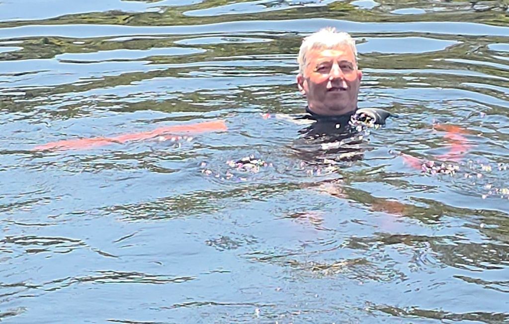 They used the boat’s platform to jump/dive in, or climbed down the ladder off the jetty.