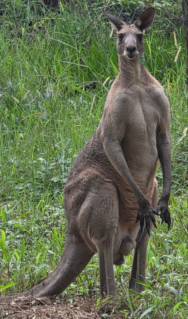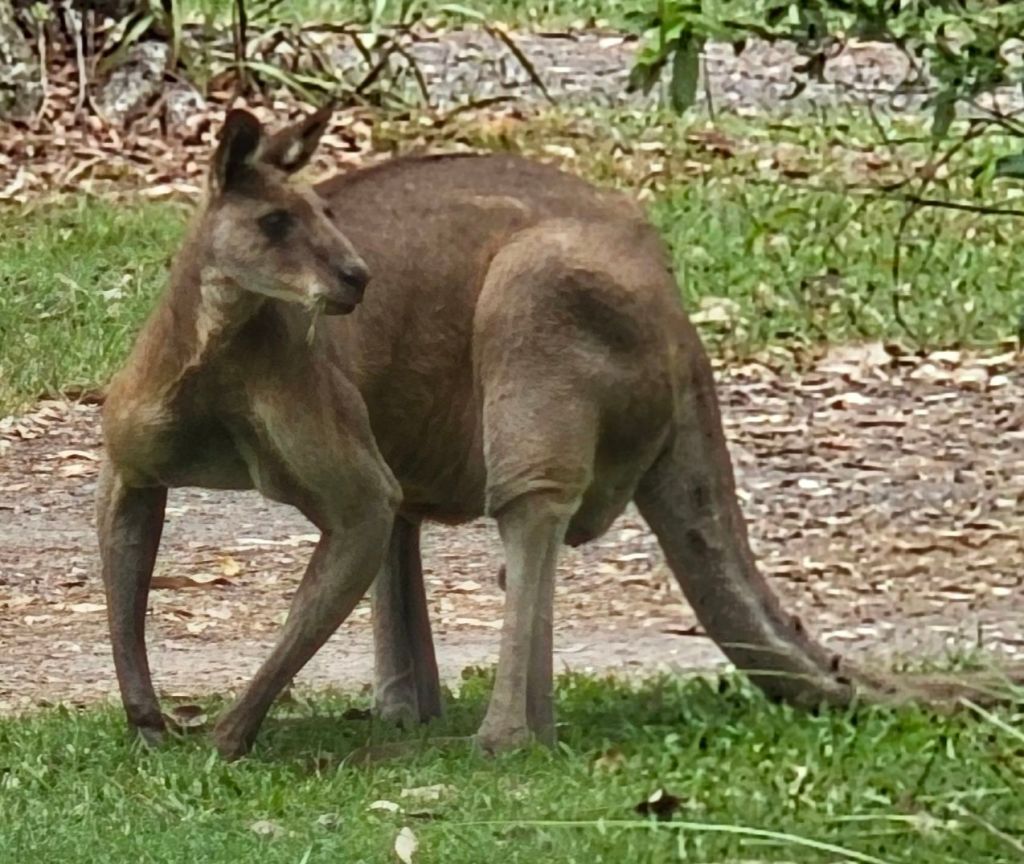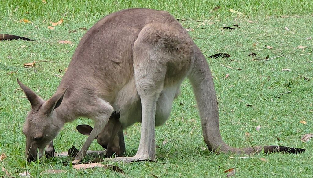 Once back on land we had our picnic then went to see the Eastern Grey Kangeroos. These are a lot bigger than our wallaby friends so caution is required. Some are standing around casually chewing on grass, while one was trying to get his wicked way. One little joey kept popping its head out and having a snack oblivious to the humans around.