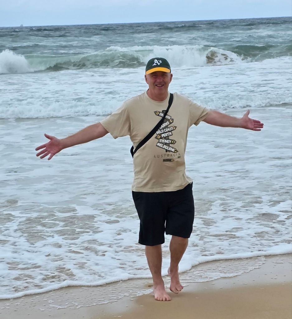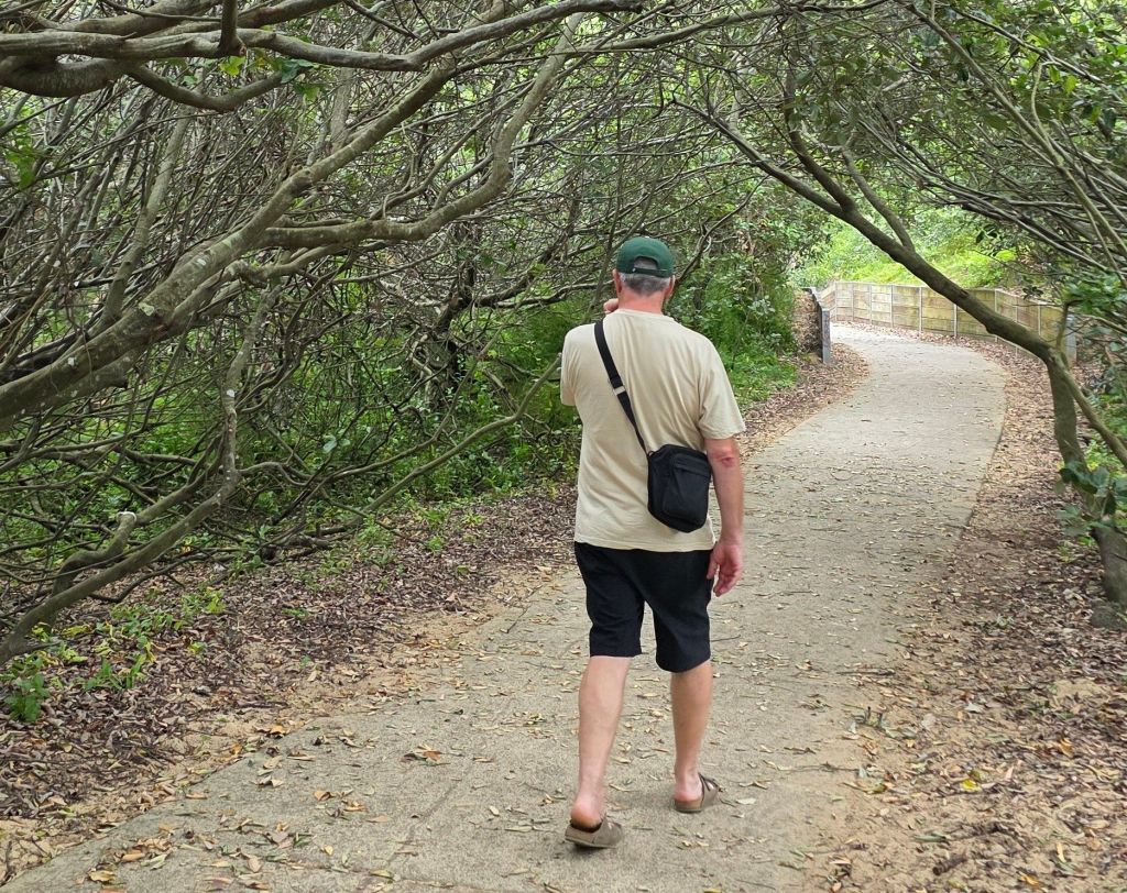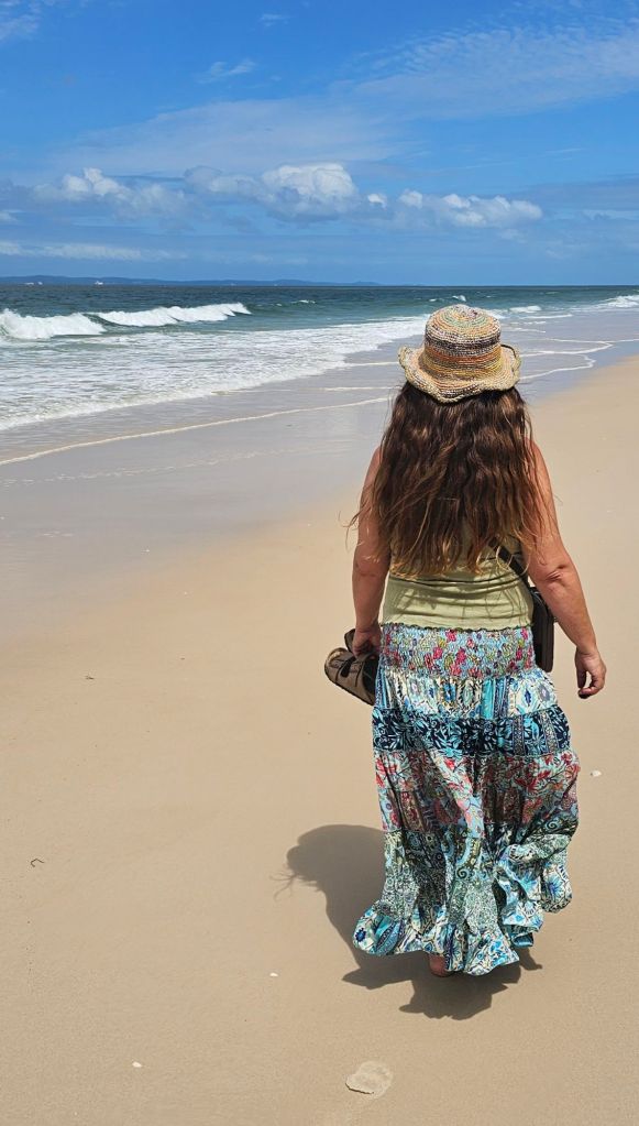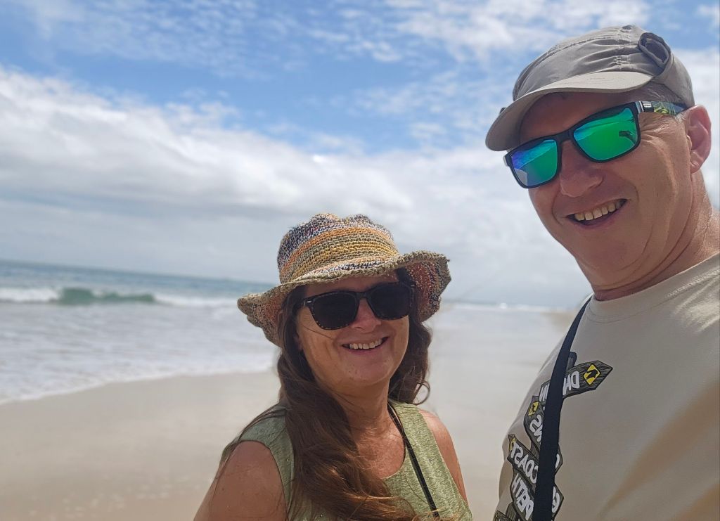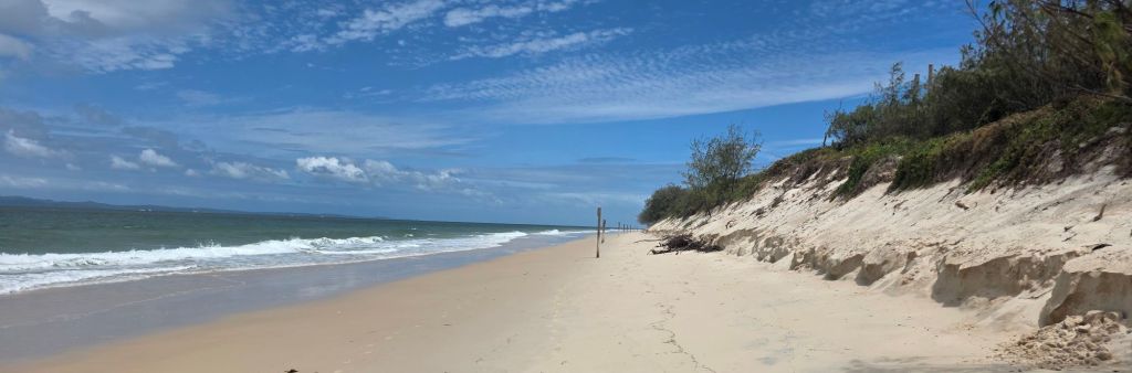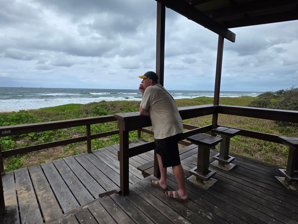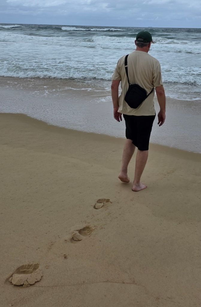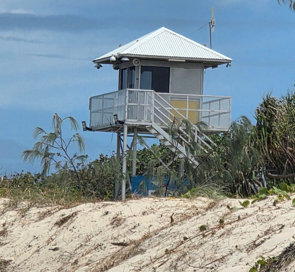 There were still a couple of locals swimming there. Suddenly they swam to shore and got out. Chris and his friend were shaken as a shark’s dorsal fin had come up less than 10 meters from them. We went for a walk along the beach, stick in hand as recommended, protection from the dingos should they come near. We didn’t venture into the water and soon came to the lifeguard station. I informed them what had happened at the beach with the locals. They said dolphins had been spotted there in the morning. We’re still not going in the water.