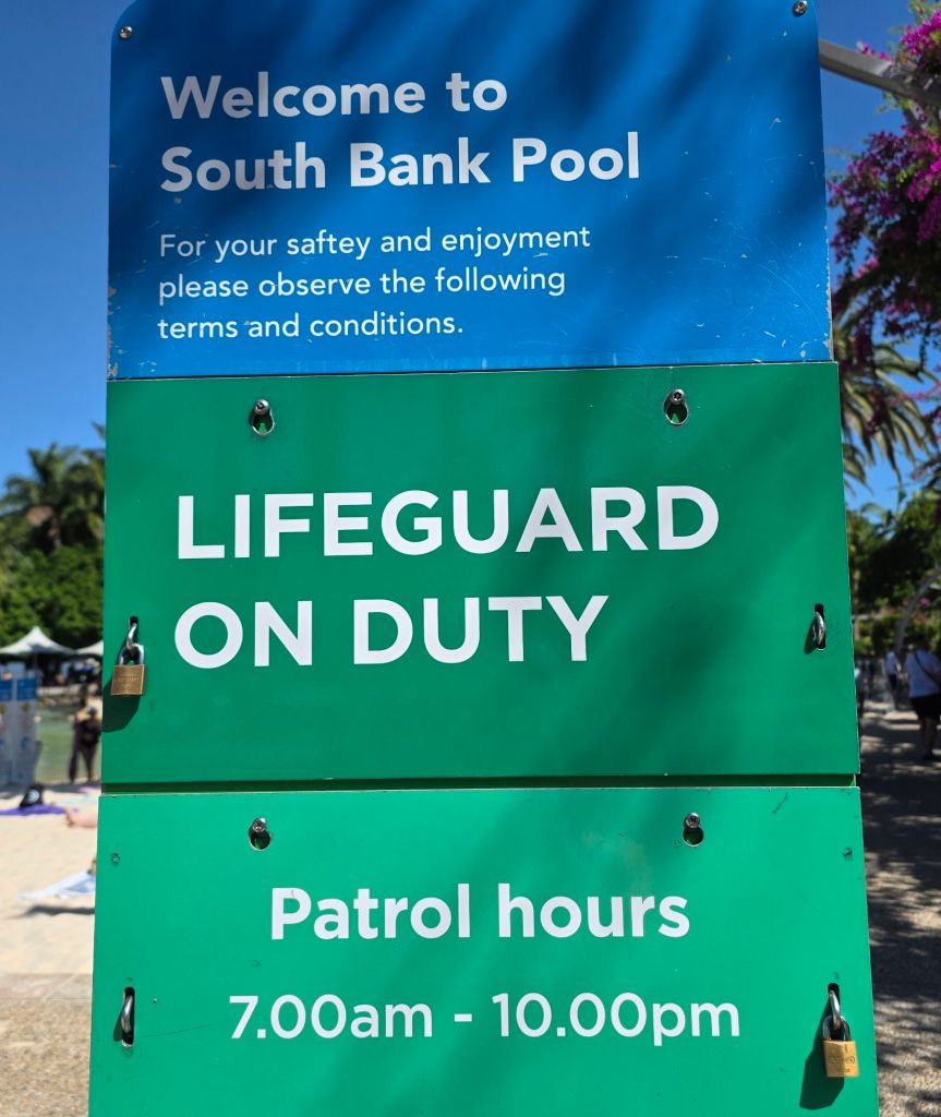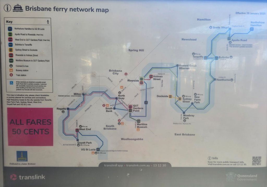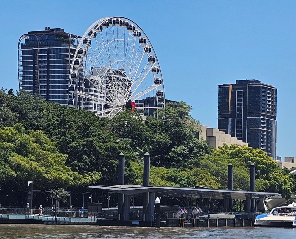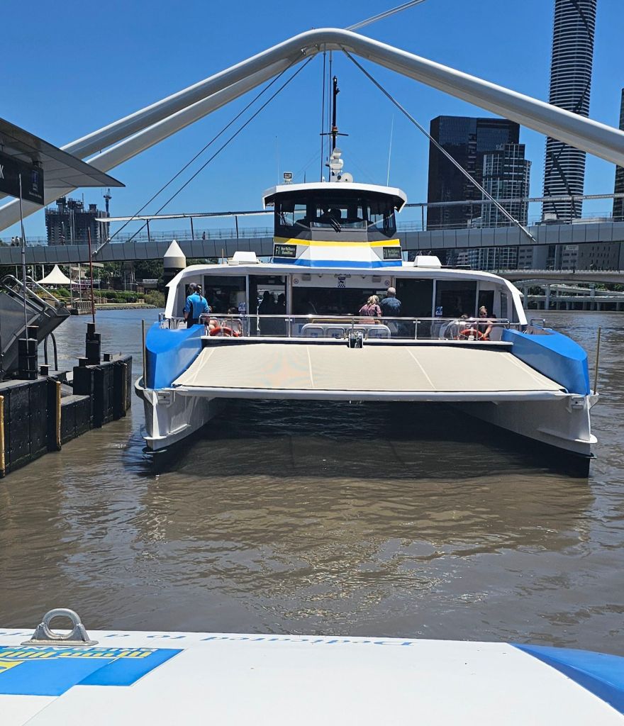 Following advice from Jo and Georgie, we were going to take a look along the South Bank after a visit to the botanical gardens. A short thirty minute walk and we are nearly there when we passed the Riverside Boat Station. As we’re doing Oz on a shoestring budget with a couple of perks, we’d not considered doing the ‘hop on hop off’ ferry and had already planned our return bus and train journey to the motel.
