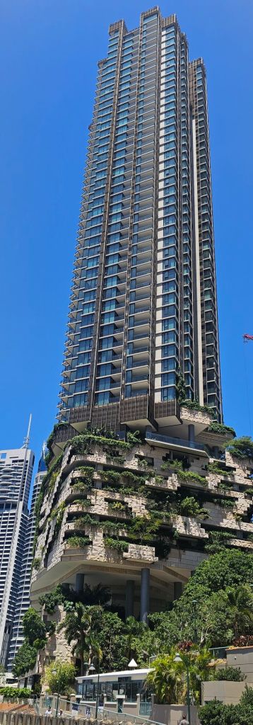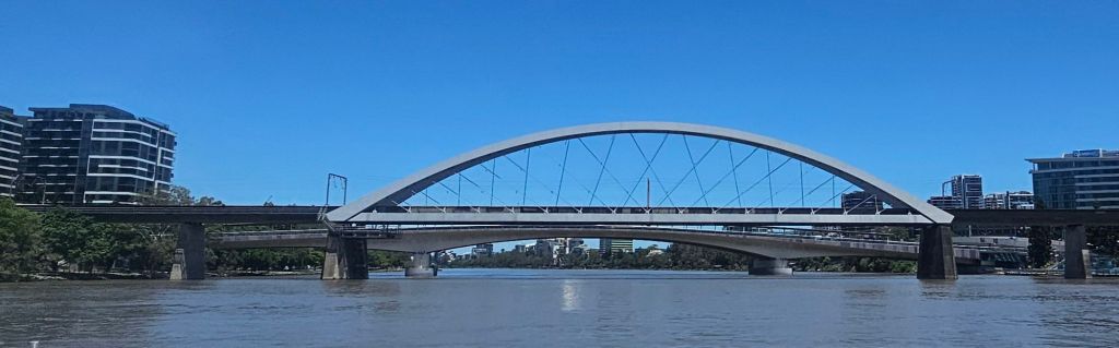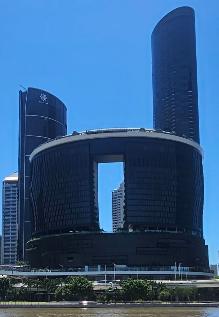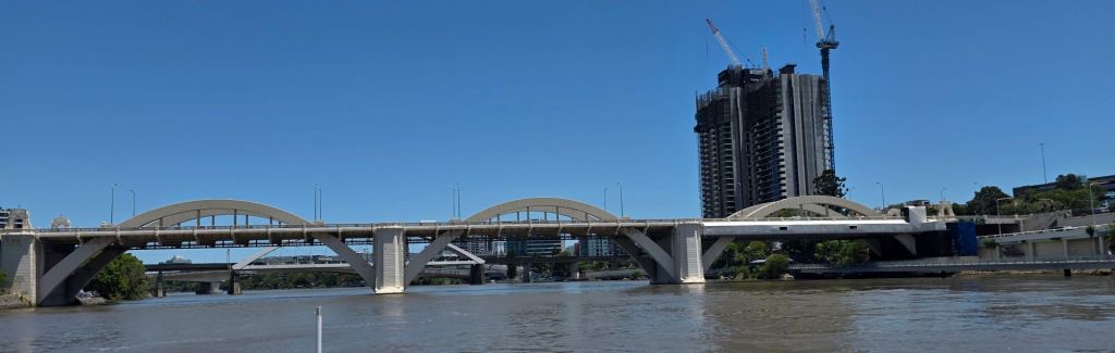 As we head off, it’s soon evident how many bridges Brisbane has and the variety of buildings along the banks from the old colonial buildings to the modern wierd and wonderful shaped skyscrapers. Whilst on the trip, we worked out that we could take the boat all the way to the last but one stop. This would take us to within a twenty minute walk back to our accommodation. But we’ll be hopping on and off before that.