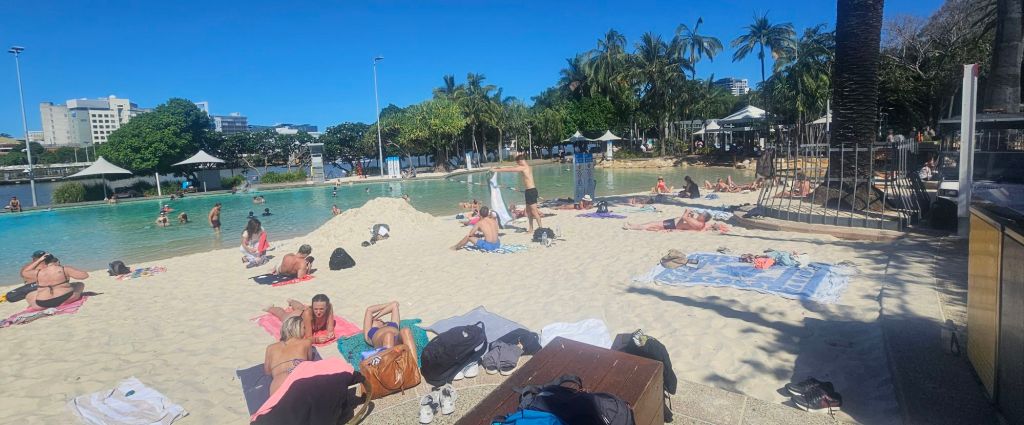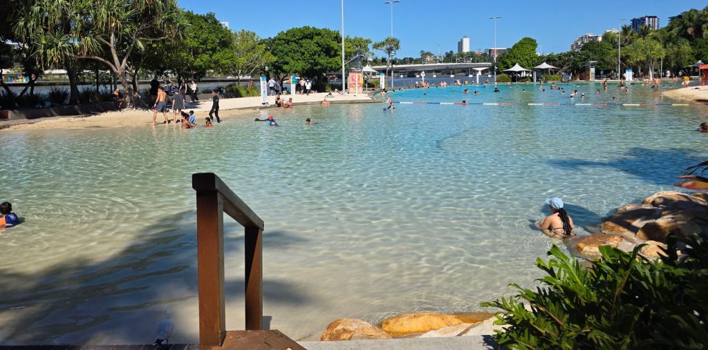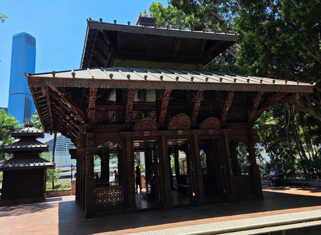 It was surreal, especially after trekking through the rainforest in the national parks. The sounds from the river and the city some fifty metres away were drowned out by the tranquility of the greenery and the flowing water feature. As we continued along the walkway it was an almost spiritual feeling. Locked in the middle of one of Australia’s biggest cities was this oasis of life and colour. We turned another corner and bang, dead in front of us was the Nepalese Peace Pagoda. It was part of the World Expo 1988 and is the only international exhibit still remaining. If we had walked along the south bank itself we would have seen this from the pathway but we were glad we’d taken the back entrance as it was one harmonious surprise after another. We sat and ate our picnic on the benches surrounding the shrine. Occasionally we were joined on other benches by city executives with their lunchboxes wanting to escape the rat race, if only for thirty minutes, but who could blame them.