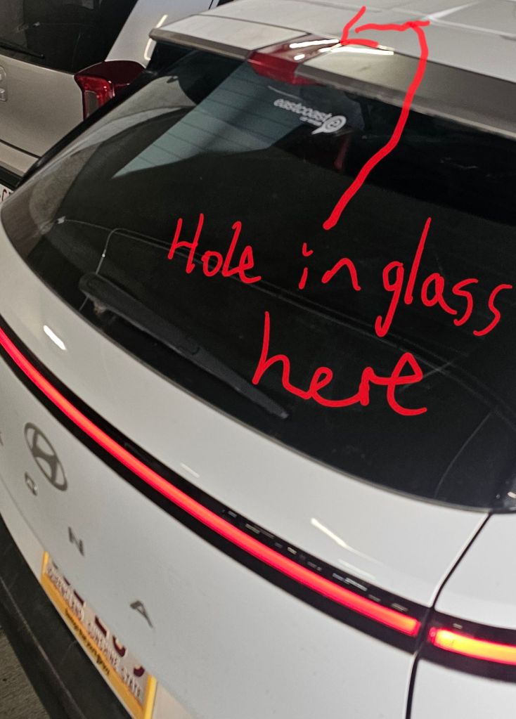 When washing it, I noticed the top middle brake light was smashed with some of the glass missing. We reported it at the East Coast car rental desk. Luckily we had purchased the full insurance, however they still wanted a declaration sheet. While the rep was sorting the paperwork I checked the video I’d taken the day we hired the car. To my surprise, it was already broken. I showed the rep, then mysteriously she found the information on the system that said that, yes the light was broken when we picked up the car they just hadn’t informed us, and hey presto no declaration was needed.