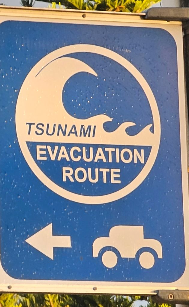 Really looking forward to going and seeing Humpbacks or other whales. Arrived at 07:15 in anticipation for a few hours on the open seas only to be informed that all tours had been cancelled for the day due to strong winds and rough waters. Ce la vie, we’ll find something else to do. Another warning sign spotted. This one not about earthquakes, but about the evacuation processes in a tsunami.
