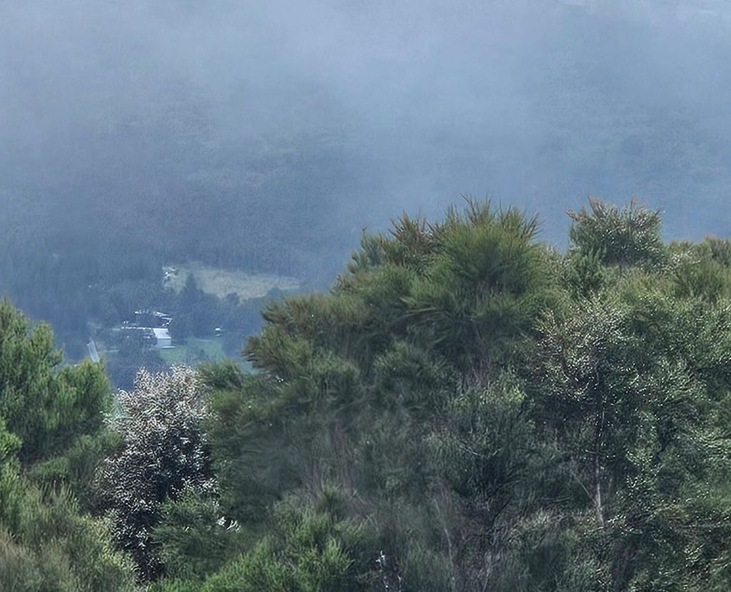 The signs, and the Internet, warned of a very steep climb following the old 4×4 road. They definitely know their steep, 2km up at 45⁰ – 60⁰ trajectory just to the lookout. So off we troddle up the side of the mountain. Two kilometres later and we reached the lookout. We started at 180m above sea level. By the time we got to the lookout we were 1,100m, a climb of 920m (3,018 ft), which is 542ft less than Mt Snowdon in Wales and at a much more acute angle. However, the terrain, although steep, was far more manageable and easier on the feet than Snowdon as it was heavily compacted. Approaching the lookout the mist rolled in, then came the rain.