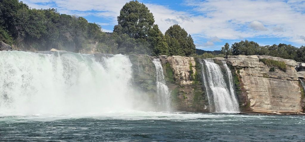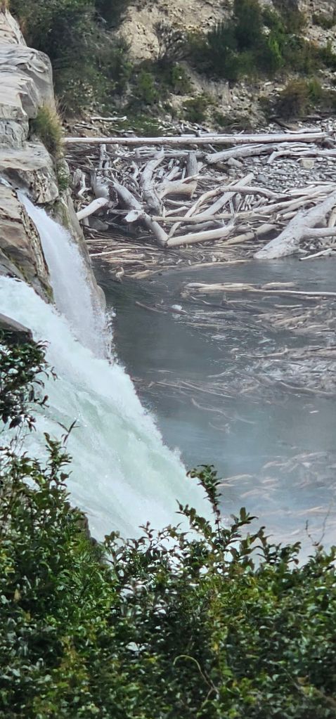 So after a small trek through the shrubbery and signs at every corner highlighting the dangers we came out at Maruia Falls. It was surreal how tranquil the walk had been compared to the almighty roar that greeted us as we turned the last corner. Again we are in low rain season, so one can clearly see how dangerous this would be during the height of the rains. The river was flowing so fast that logs were swirling around the basin at a high speed, another reason not to swim here. At full flow, we’d imagine the current would take you miles and you’d be white water rafting without the raft.