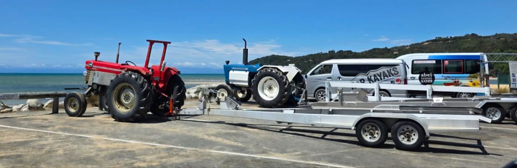 We arrived for the Abel Tasman Coast Walk and were not alone. With a huge car park full of motorbikes, campervans and a host of other vehicles. It was obviously a great pitstop for the travellers or a day out for the locals. There were a few eateries and activities on offer, such as kayaking. A row of tractors and trailers were parked ready to transport the boats in and out of the sandy beach to deeper waters for people to go on their excursions.