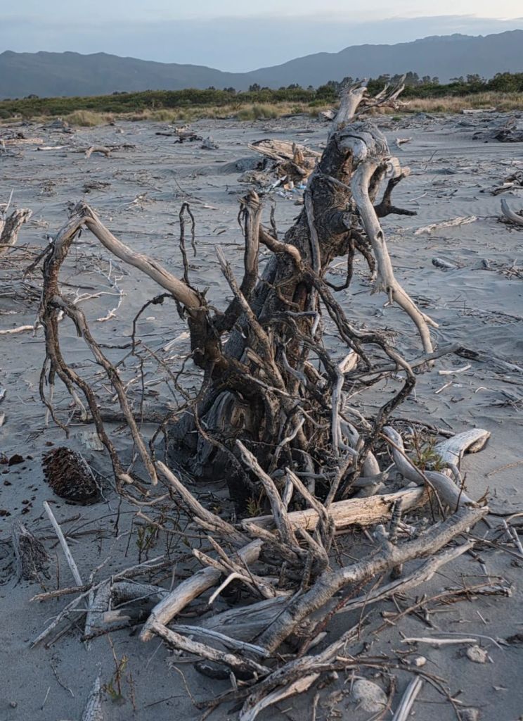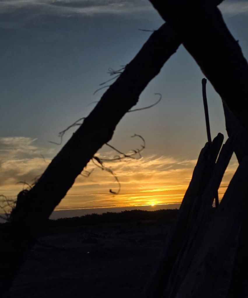 With seventy potential mobile homes and campervan pitches, and the likelihood that they might all be taken, we decided to go for a walk along the beach and catch the sunset. Again the beach was half packed with driftwood. Much of this was scorched, obvi