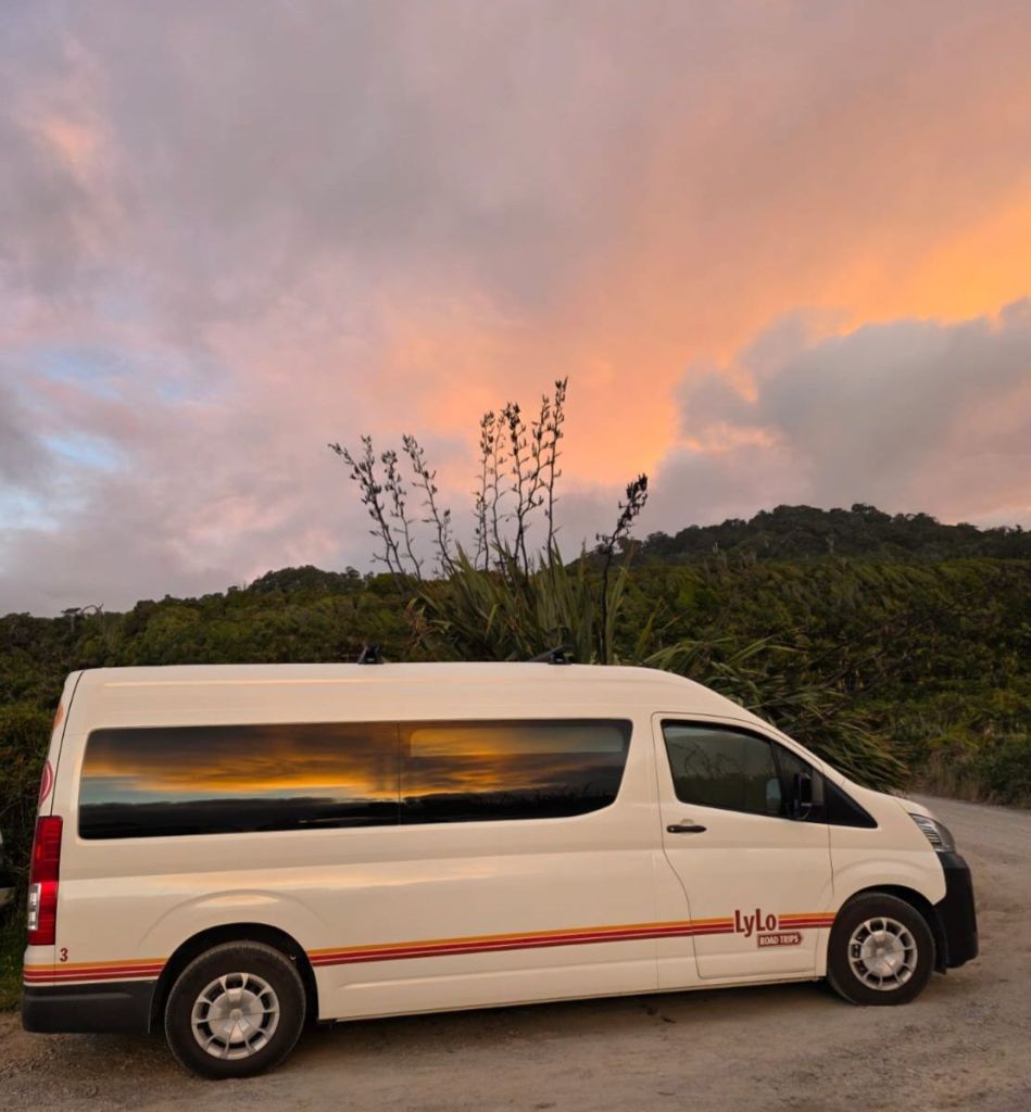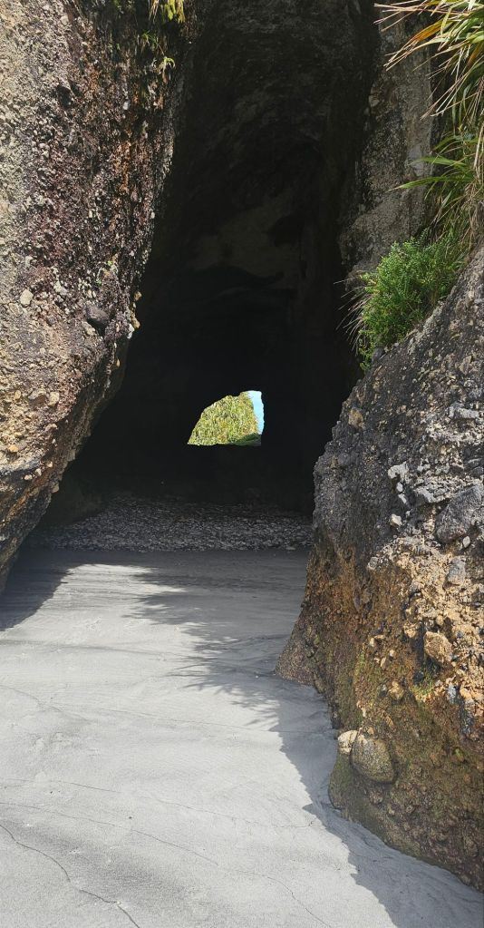 A short walk through the rainforest brought us out on a paved loop lined with New Zealand Flax plants and Chorus Cicada. Cicada, like their namesake in Australia, are little flying insects that produce a deafening high-pitched droning sound during the summer months to attract their mates that can reach between 100 and 120 decibels. This is the same level as a chainsaw or aircraft, no wonder we didn’t get much sleep in the tent before. It’s often referred to as a Mexican wave through the trees, when one cicada starts they all start in domino rally fashion.