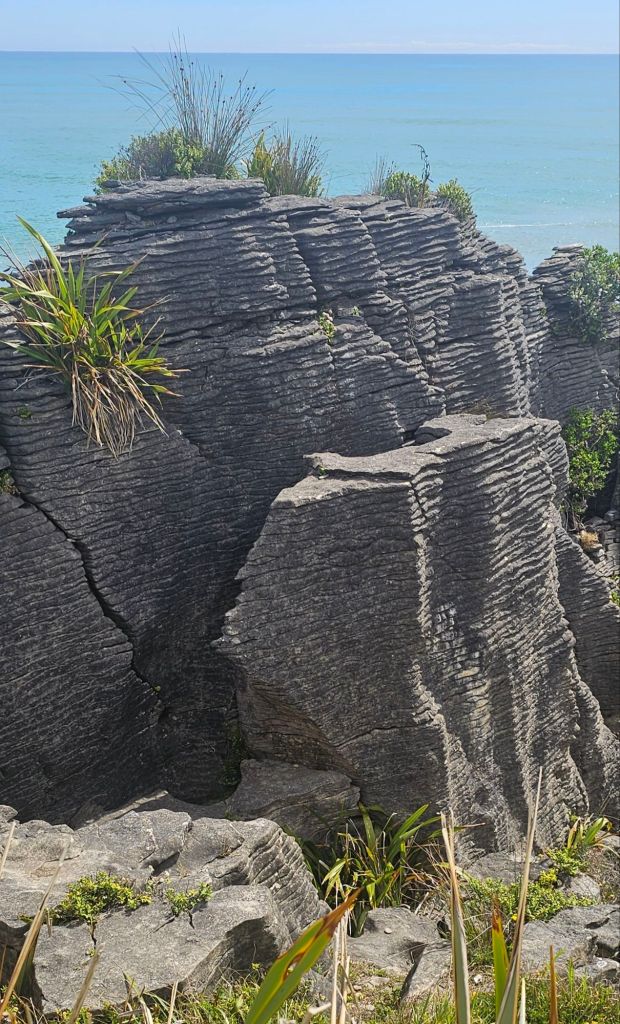 Once we had gotten to the ‘pancake rocks’ we were blown away by the sheer magnitude of these awesome stacks. No bacon or maple syrup on these for the two Americans in front of us who were just rushing around to see the blow holes. These Dolomite Point stacks were formed in a similar way to the oil reserves at the bottom of the ocean. Made some 30 million years ago from layers of dead Marine creatures and plants crushed together on the seabed in alternating hard limestone and soft mudstone. These were then uplifted by seismic activity and eroded by the forces of nature into the pancake-like tower formations before us.