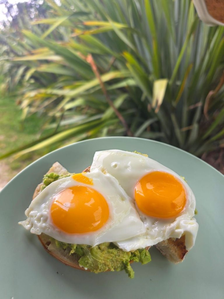 On returning and pulling out the cooking station our friend the weka appeared. He patiently watched us fry the eggs, toast the bagels, chop the avocado, spread the cream cheese and eat them. Once he realised he wasn’t getting any off he went to try his luck elsewhere.