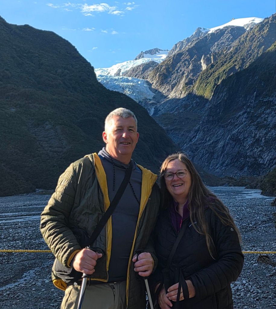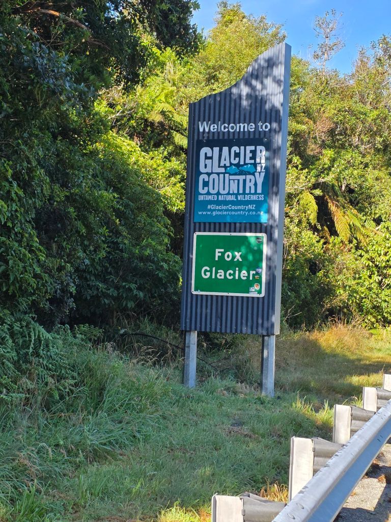 We descended the walks, jumped in the Sandd Van and headed south to The Fox Glacier. Before getting there a sign read ‘last fuel stop for over 100km’. Damn rookie mistake not filling up in the town we were leaving. The fuel was thirty-five cent a litre (75p a gallon) more than before and it was too late and too far to turn back. They had every motorist over a double-barrel shotgun – crooks I tell you. Everyone has to make a living we guess. A minor consultation was we weren’t the only rookies in town with a queue of campervans waiting to fill up. We put enough fuel in the tank until the next big town and a couple of litres more for emergency stops.
