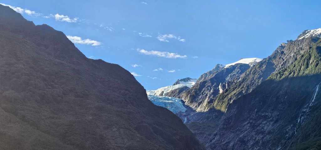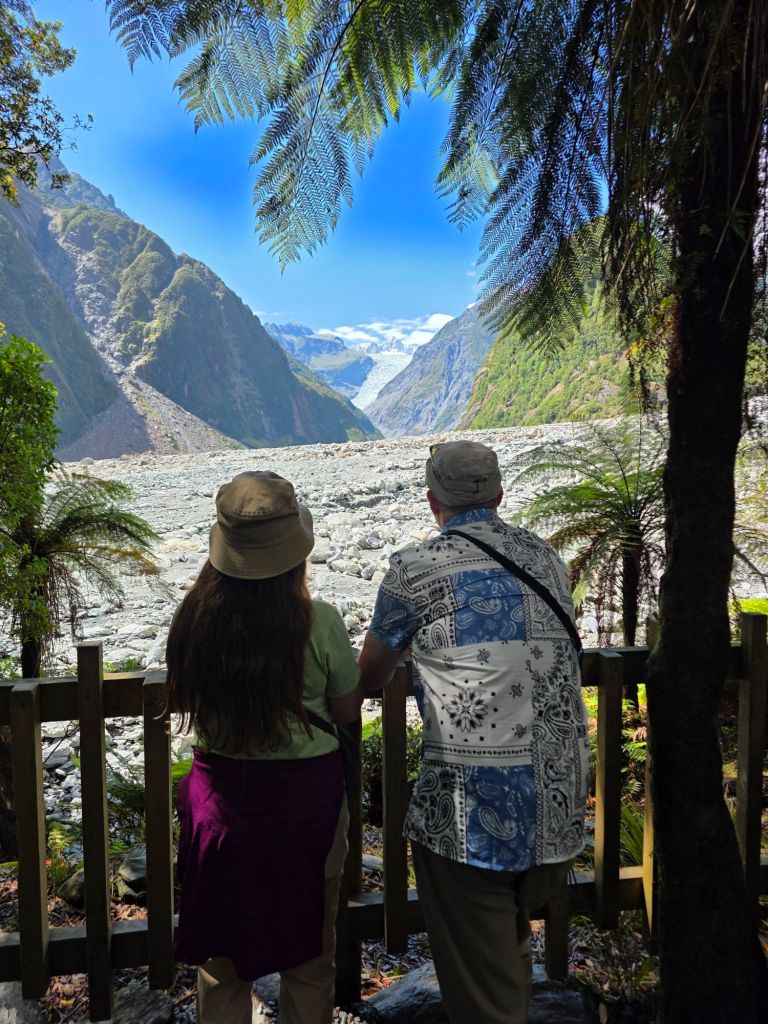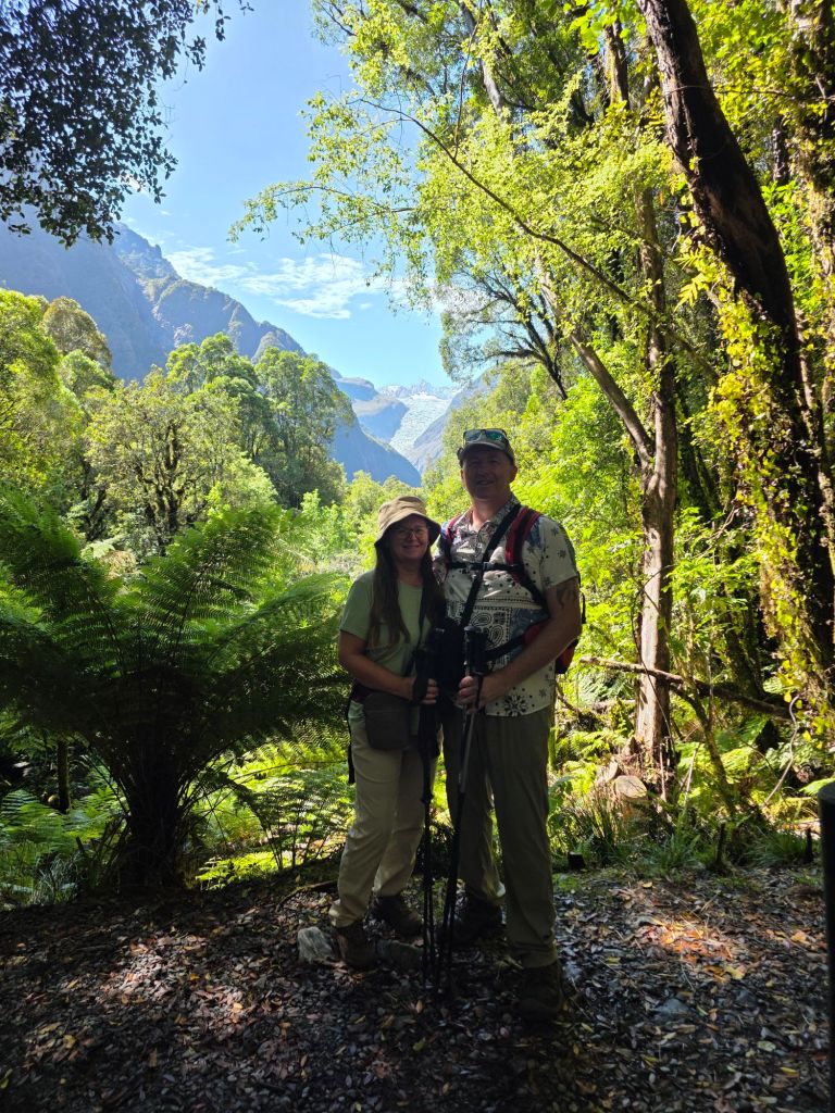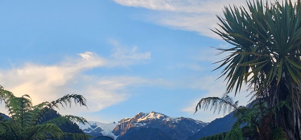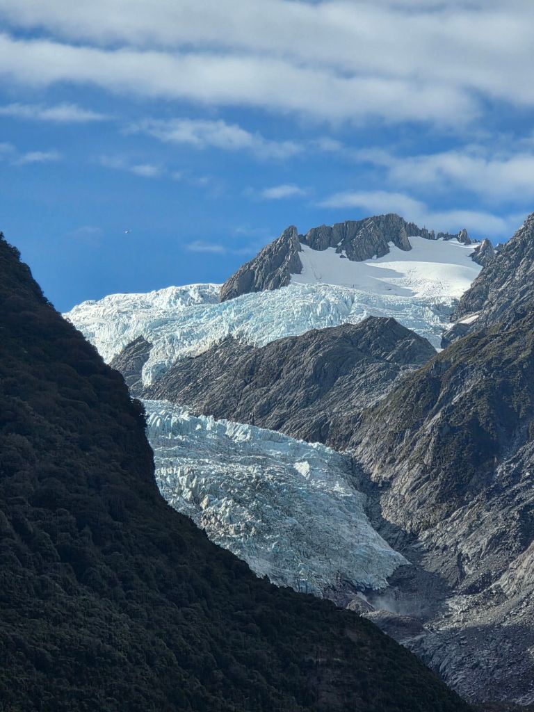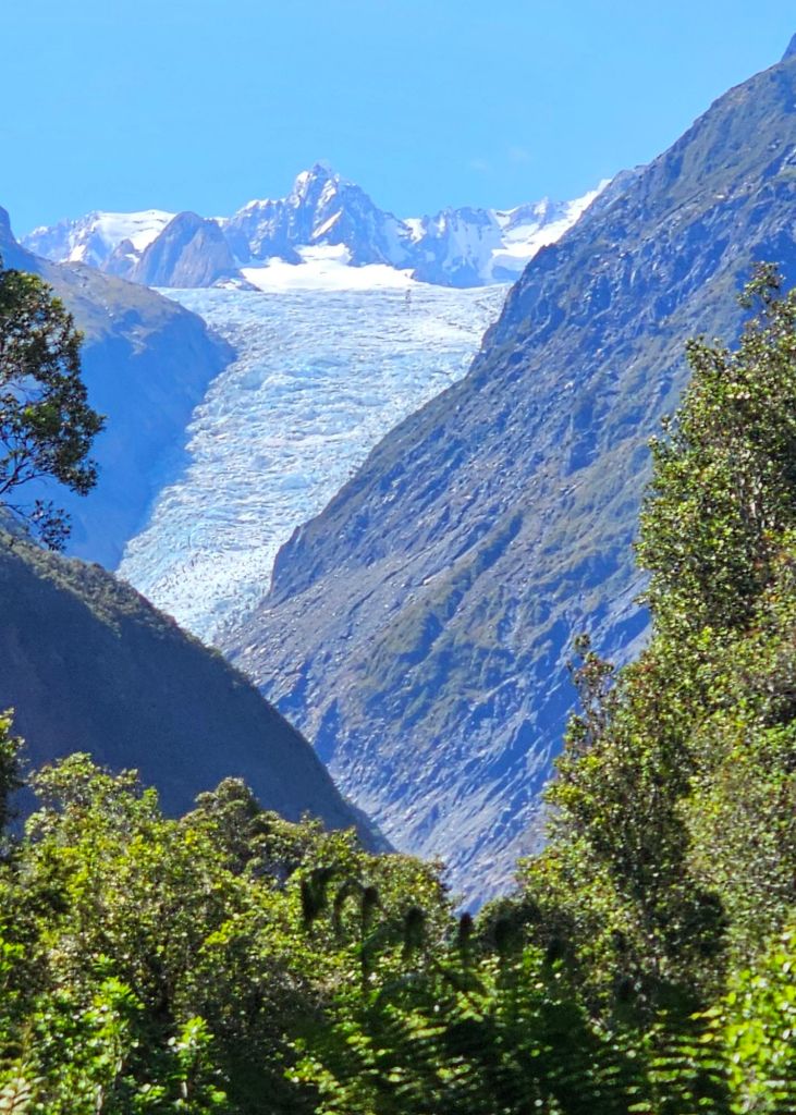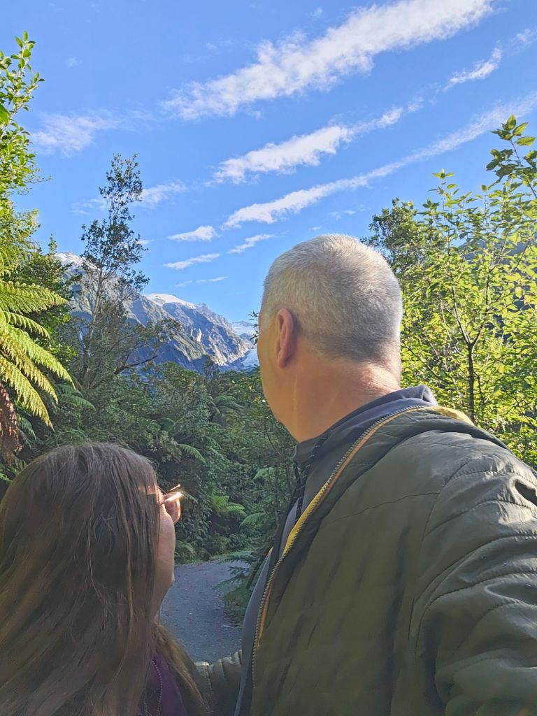 Studying the map, and our previous notes, there was a park on route to Lake Matheson nearby that had great reviews. Only ten kilometres up the road and we were treated to a different perspective of the glacier. From here, although further away in distance, more of the glacier could be seen including it’s abrupt end. Who knows, if we came back in another year it could have shrunk even more. On the otherhand, nature has a way of fighting against the odds and a natural occurrence could see it return to all it’s former might and glory.