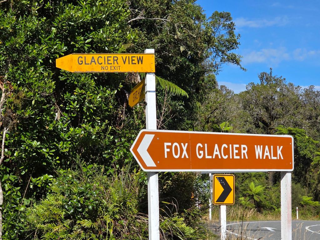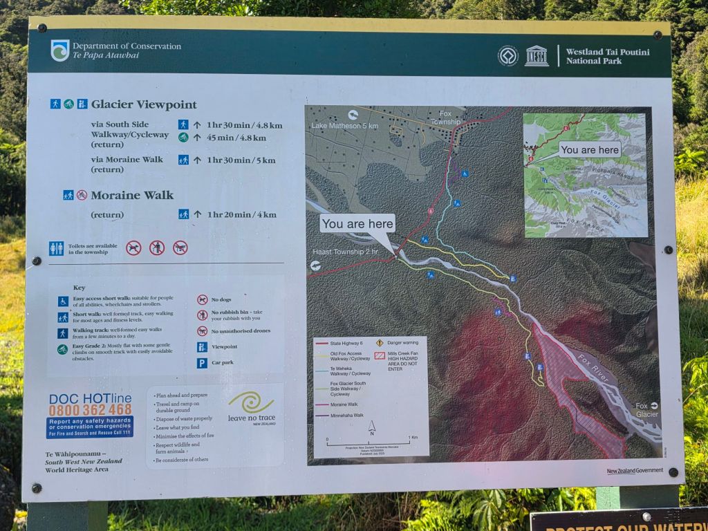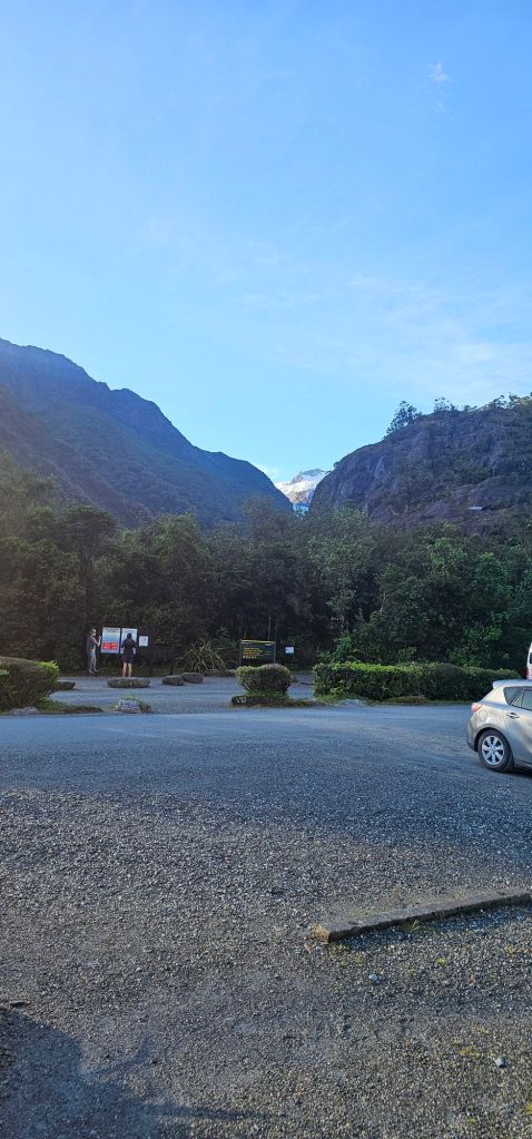 Arriving at Fox Glacier (south side) Track, we were at least thankful they didn’t charge for parking, so everything evened itself out in the long run.