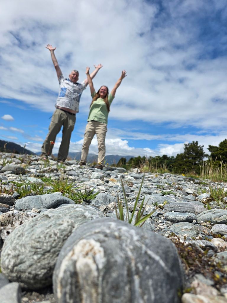 The park also had a three-part life-size sculpture of an original Maui canoe, they crossed the pacific from the Polynesian Islands thousands of years ago to the shores of New Zealand. Very fitting as there was a river running next to the park. A walk along it helped us find some rare Pounamu stonea. These were beautiful shades of green and we had seen some of the traditional Maui jewellery for sale in Picton previously, apparently they are worth a mint.