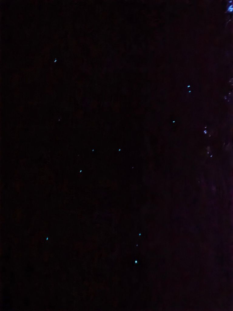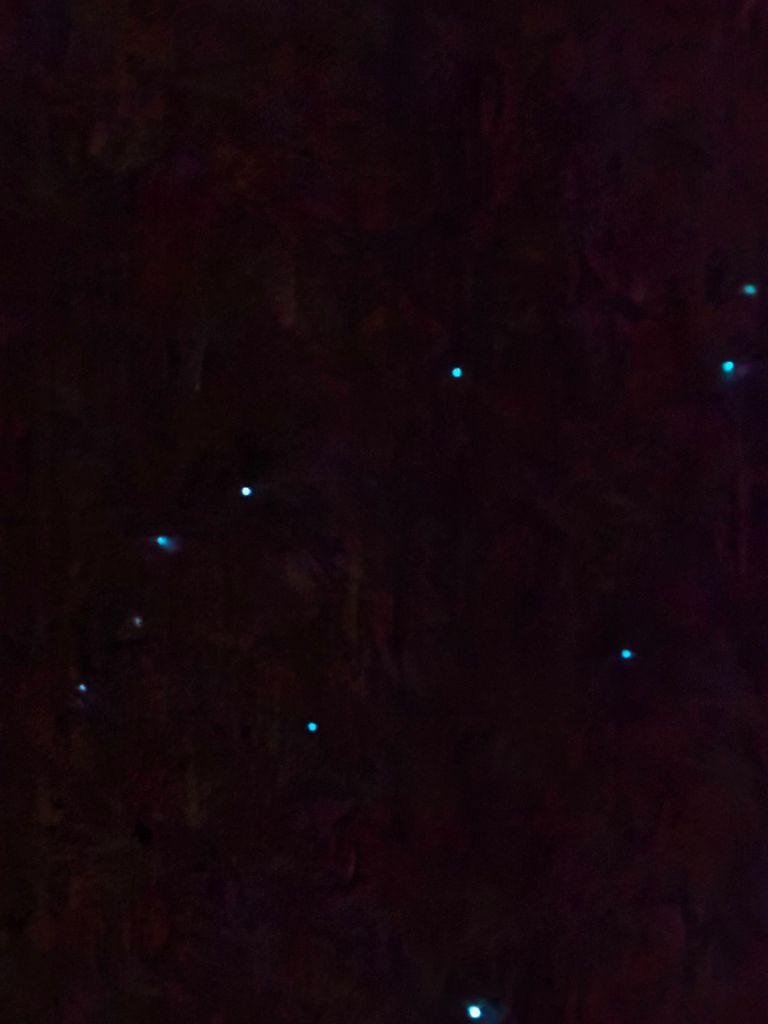 From the park we went to our campervan hostel at Fox Glacier Lodge. The cooking area looked good set up and the showers even better, so we took full advantage of the facilities before going on a free organised walking tour by the host. It wasn’t long until we were in a dark mysterious underworld. Every now and again a cyclops caught the corner of one of our eyes. Were we imagining things? No, the host whispered for the first time in the woods and advised us to crouch down and look ahead. It appeared that our world as we know it was turned upside-down. Hundreds of stars shone brightly above what should have been the ground. A quick check above, and yes the stars were still there shining through the odd gap in the trees. Was this a reflection we’d seen, or a flourish of fairies peeking through the leaves? No it was the glorious Glowworms twinkling in their own little galaxy. As we ventured further into the forest, more and more lights could be seen. Mainly blue and green with the occasional white fairy light. Our tour guide explained the blue and green were male and the white bright light was the female. He also told us they not only use the lights to attracplt partners but to lure prey. One particular bush was laden with lights and illuminated like a Christmas tree. We returned and settled for the night in the van.