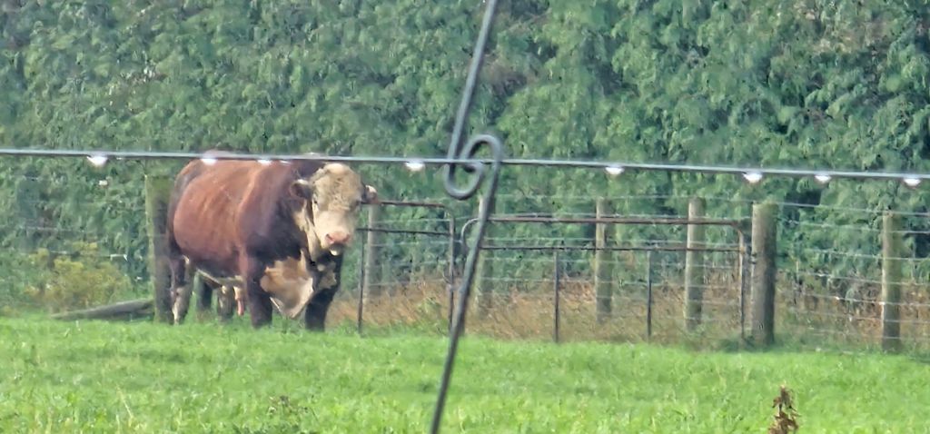 We stopped to take a photo of an enormous bull at the very back of a field. Obviously, we hadn’t cleaned all the milk and cow sh*te off of us as well as we thought, as he could obviously smell it. He got very aroused and was pulling some very loving faces in our direction. With his growing interest we decided to hot-foot it and moove on, no bull.
