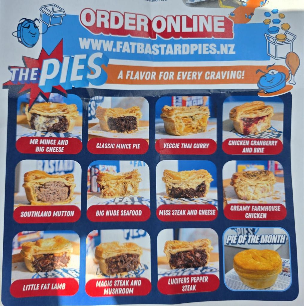 With the heating on full it took us no time at all to start drying out. We headed into Invercargill, a stop we hadn’t intended doing, but a nice one as Ben’s schedule had changed so we were able to spend the whole day with him. Apparently you cannot go to Invercargill without having one of their famous pies. The owner probably came up with the name whilst watching an English football match and there was the usual chorus from the away fans whenever a larger player touched the ball. This is nearly always followed by ‘who ate all the pies’. Genius, combine the two and away you go.