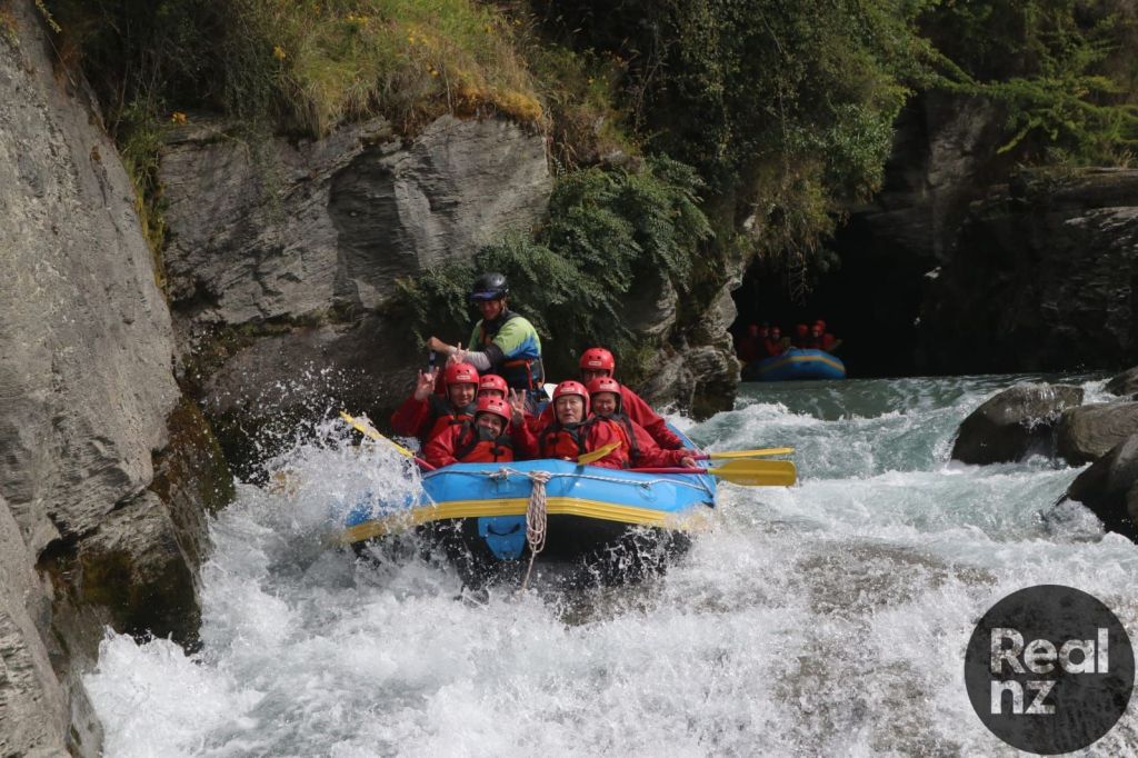 We were out of the tunnel but not out of the woods so to speak. Finn explained that we were about to go through our last rapid, the Cascade. He also told us their would be a photographer waiting on the rocks to take a couple of ‘holiday pics’. What he didn’t tell us was what was about to happen next. Giving the command ‘paddle hard’ everyone paddled and we kinda realised why the river got its name. We Shot over the edge and landed safely in the calmer basin below. Looking back and watching the next raft fly over we saw the magnitude of the drop. Had we really just done that and not flipped or flown like Superman. No, we had survived the Shotover River.