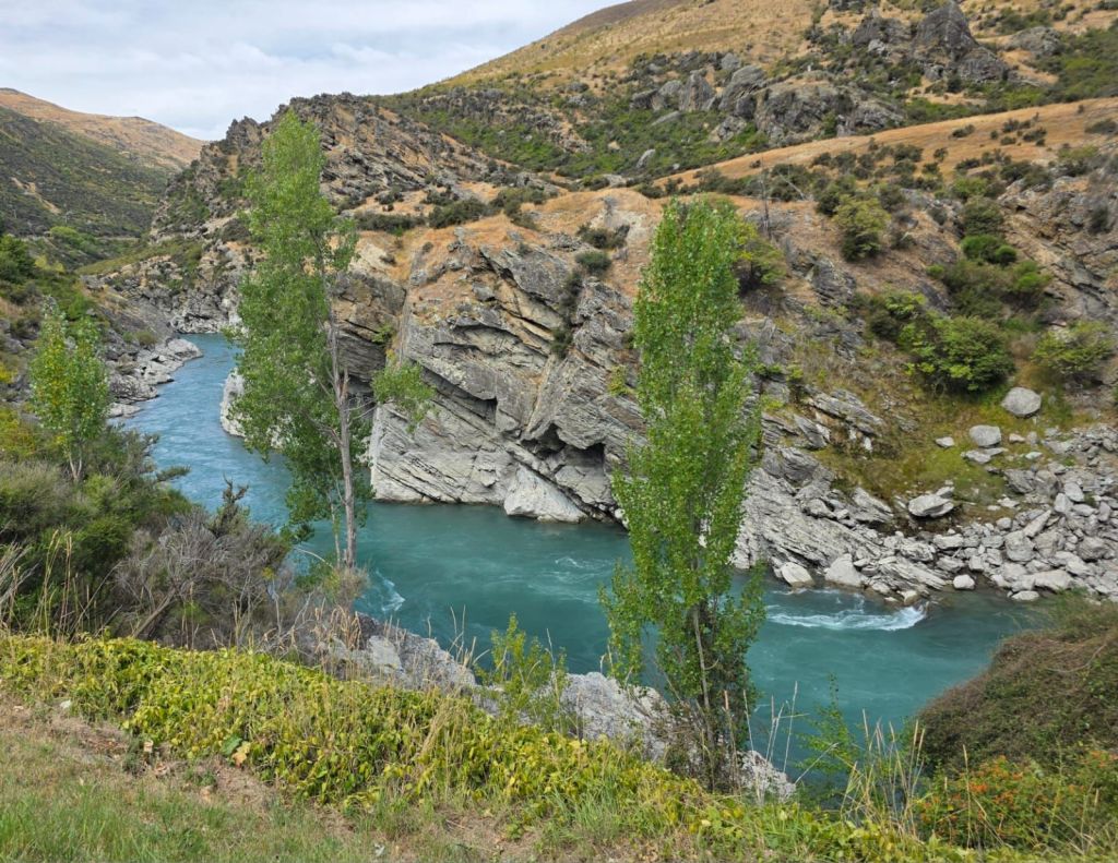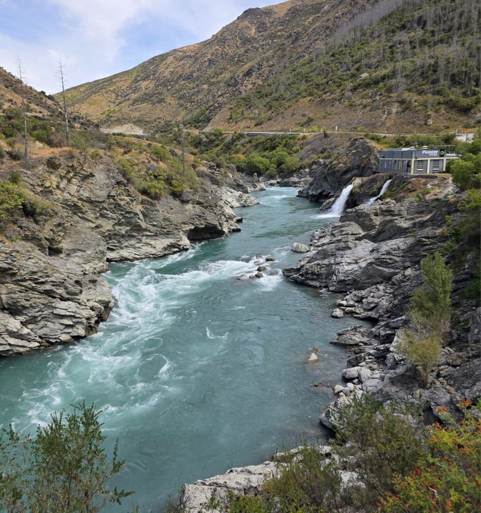 There before us was the notorious Shotover River. Hard to imagine this turquoise blue river standing before us was once jam-packed with people panning for gold. Today it is flowing freely, and we are hopefully not touching the riverbed. We are not carrying shovels, pans and sieves, though we are dressed for action of another kind.