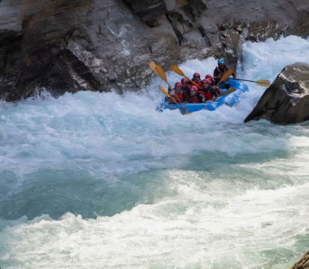 It was hard to imagine how fast and hard the brain and body were working though this awesome experience. All the time your body is twisting, turning, being pulled and pushed in different directions you eyes were still watching the water and the surrounding mountainous terrain. You see each huge bolder that had either been placed dramatically during the ice age 25,000 years ago by a glacier that once occupied this hollow, or moved by the power of the river itself. With the soft rock type, Shist, (which really doesn’t feel or look soft) making up the mountains, everyday can be a different experience as the power of the river moves the boulders from the all too common rock avalanches and landslides. Every one of these boulders and rocks looks like it had been strategically placed in the water ready to rip you apart if you get it wrong. It was quick thinking to let go of your ‘safety’ side rope and whip your hand in momentarily, before grabbing that lifeline again, as the mountain face threatened to rip off your knuckles. It felt in those split-second decisions like it was teasing you, even daring you to feel it’s firmness, like a bodybuilder flexing their muscles to show you their baseball biceps. Even with all these factors going on, your eyes, as well as watching the water for hazards, were surveying the walls of the mountain, it’s ridges and crevices as well as the fertile forests that covered the clifftops. At this speed you think ‘was that a waterfall we passed or a split in the mountain side where water once flowed or still flows in the winter?