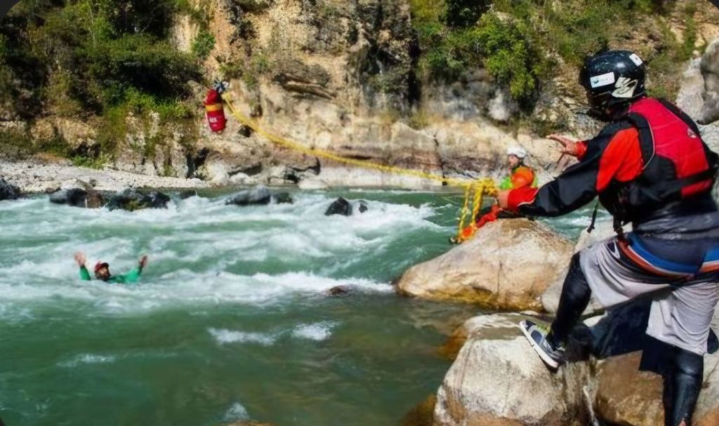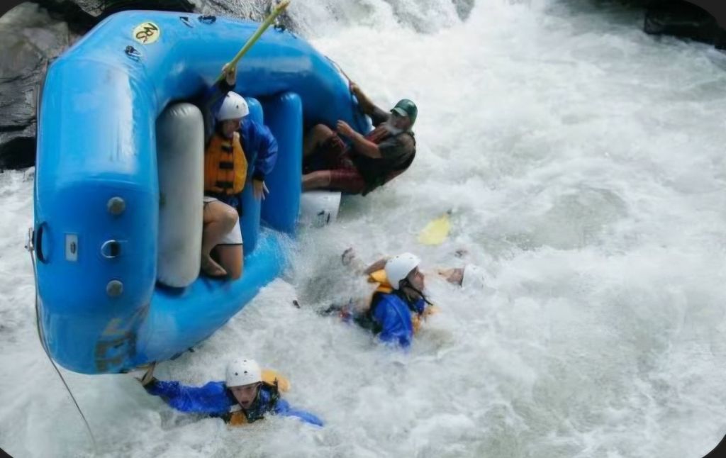 Once the American was recovered enough, he told us his ordeal. He was toppled out of the raft and found himself being dragged back. He was being held by Finn and asked to swim to the other side. He couldn’t swim across, as by then he saw that the two of us were hanging on for dear life and didn’t want to knock us off. The kayak came and took him to another raft where the crew paddled him to safety and back to us.